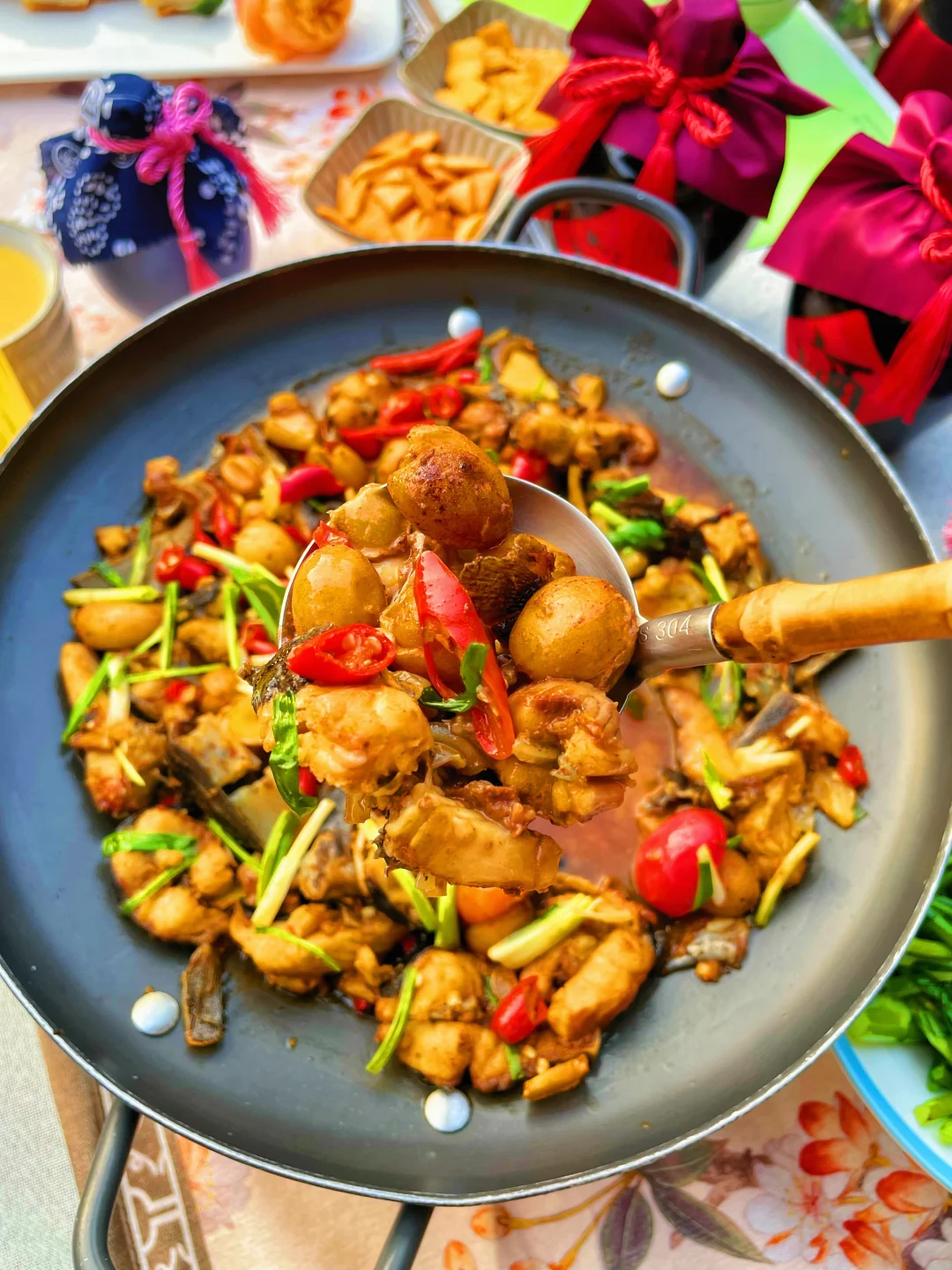 ✅ 山野土鸡:散养一年以上的走地鸡,现点现杀,泉水炖煮的鸡汤鲜甜到喝光三碗,肉质紧实不柴;土窑烤鸡更是绝,柴火现烤到皮脆流油,撕开瞬间香气扑鼻