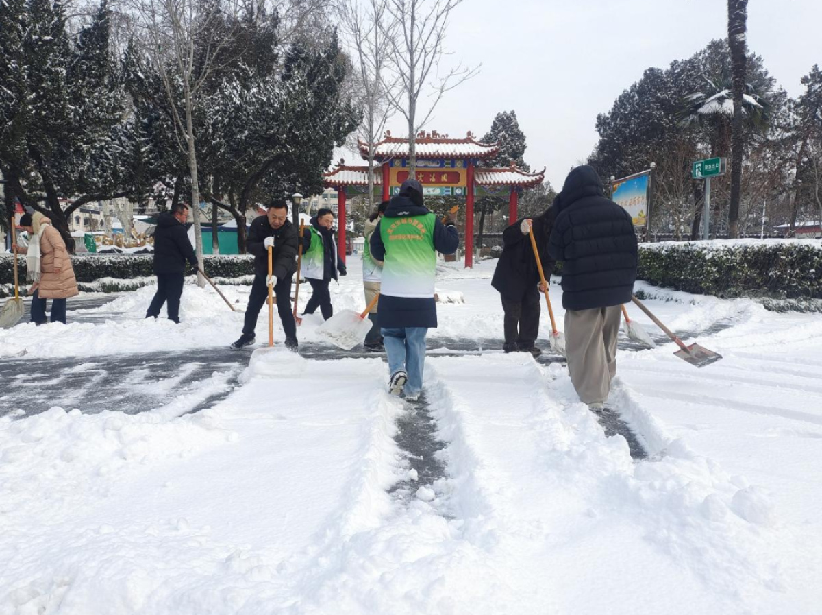 1月20日,降雪过后,漯河市区各游园、绿地内积雪结冰,给市民休闲出行带来诸多不便。市城管局园林绿化养护中心闻雪而动、迅速部署,组织全体干部职工前往人民公园、中银广场、樱花园、烟厂花园等游园及绿地,全面开展清雪除冰行动。