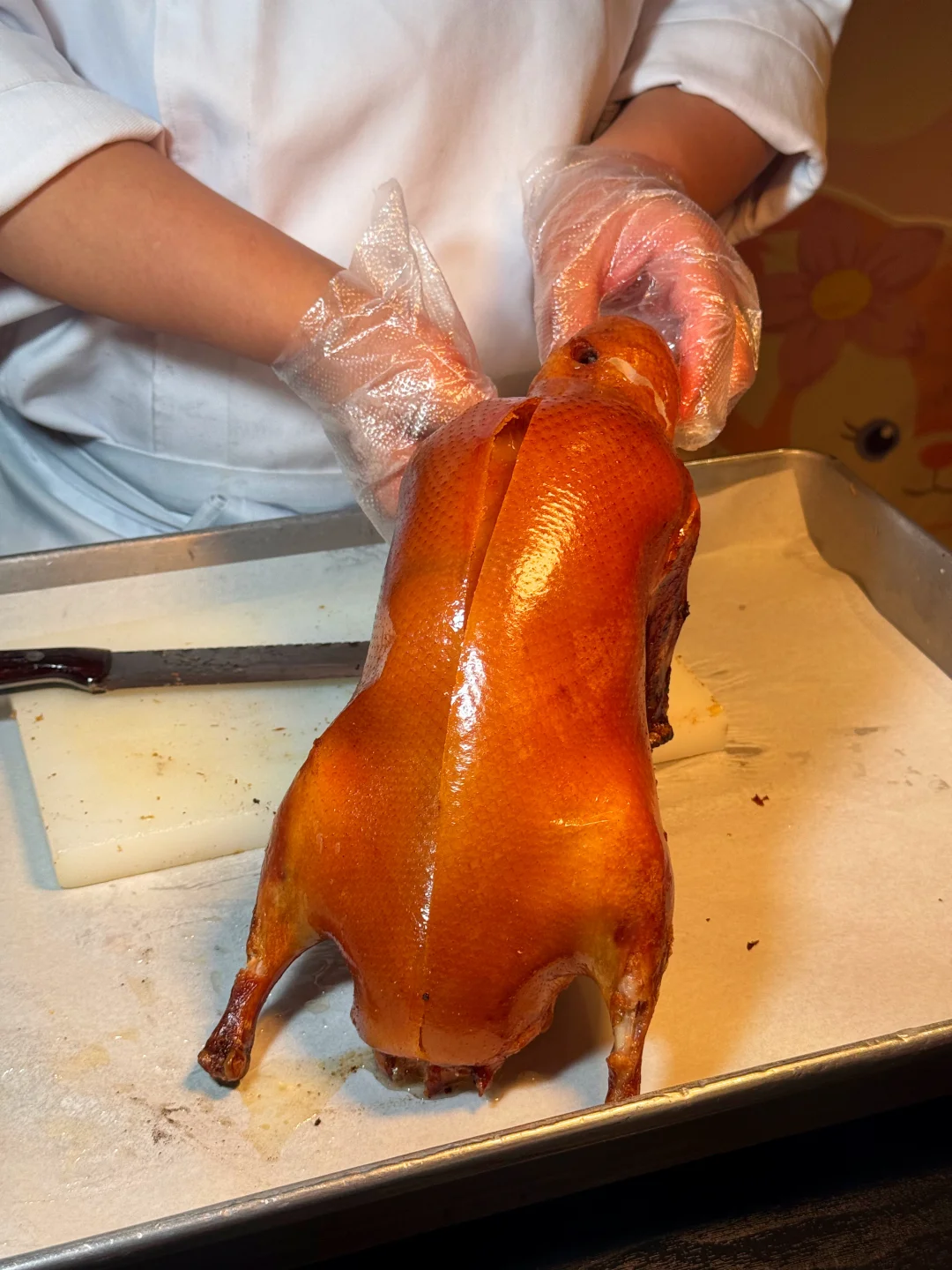 必点招牌香酥烤鸭一定要冲!师傅现烤现片,鸭皮金黄酥脆,卷上荷叶饼配甜面酱,小朋友自己动手卷得不亦乐乎,连吃两个都不腻。
