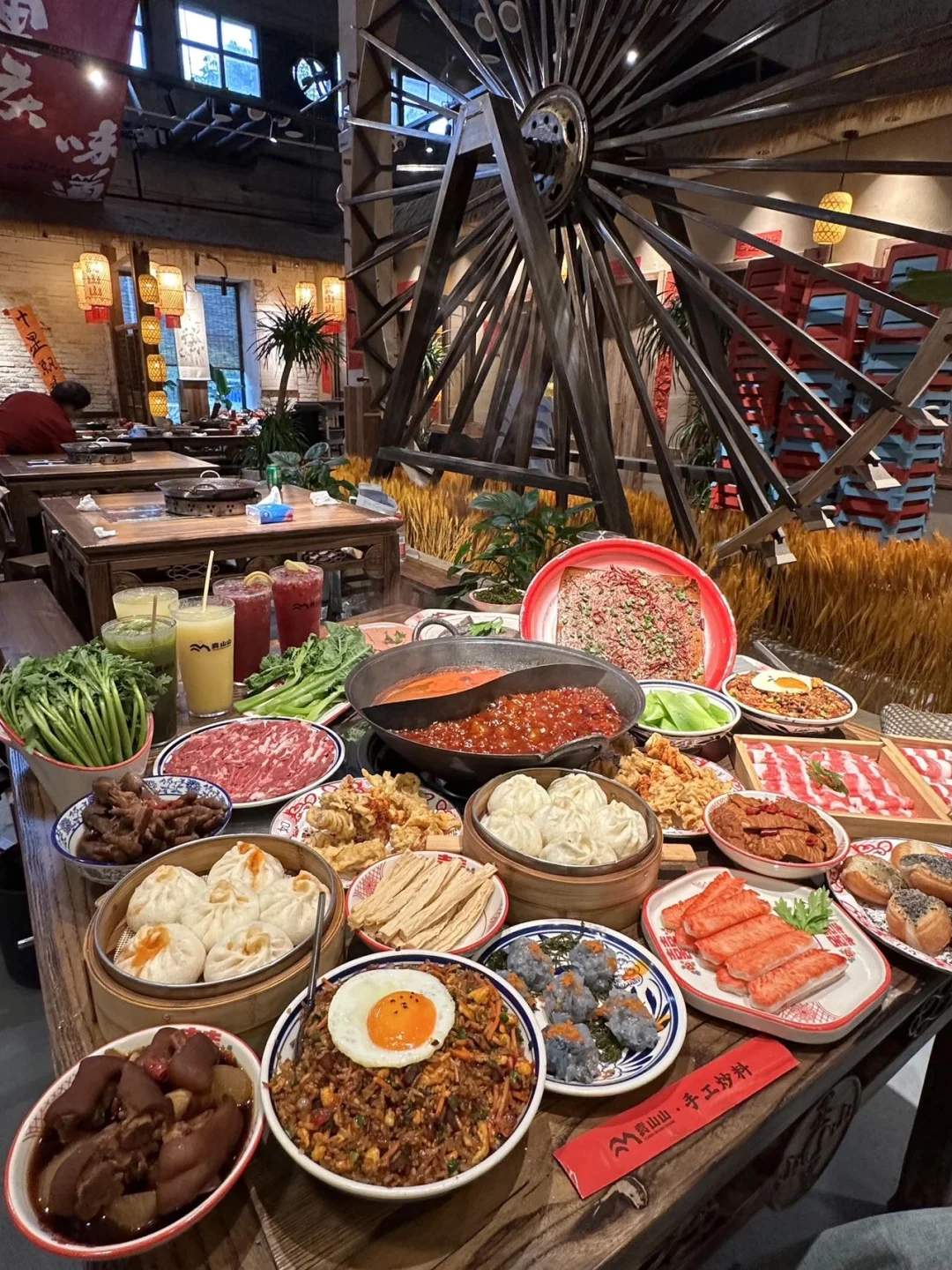 终于开到家门口啦!不用跑啦!袁山山火锅来万达儿童天地的街口,地道的老重庆!火锅!!🌶️🌶️ 现炒的火锅底料!锅底巨巨巨香! 现蒸的嬢嬢现蒸鲜肉包子!现炸的超长长长酥肉! 尤其那个脆哨炒饭好好好吃,年度TOP1碳水快乐! 还🈶那个山楂冰粉!巨巨快乐!! 啊啊啊!是我喜欢的山城火锅的味道!越煮越带劲!我的毛肚肥肠!这天气再来一碗热乎乎的银耳梨汤,爽!!