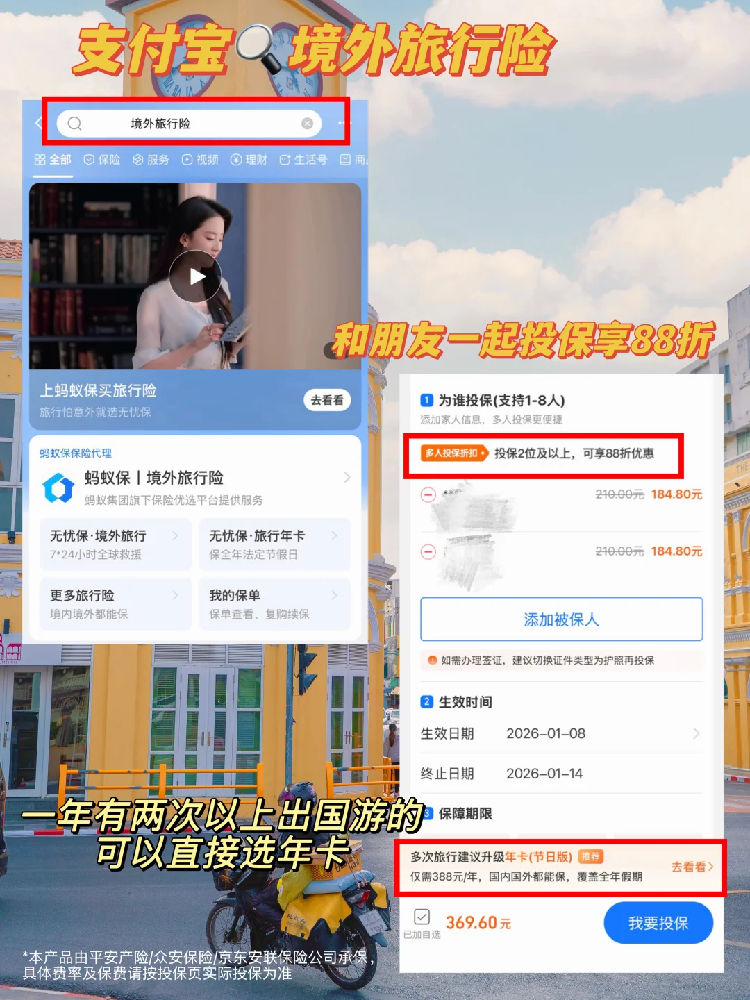 支付宝搜索“境外旅行险”就可以投保,非常方便!和朋友一起买还享88折哦~