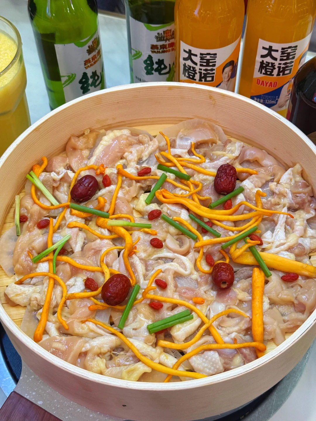 上层去骨鸡块蒸8分钟刚好,肉质嫩到爆汁,蘸秘制调料直接香迷糊!