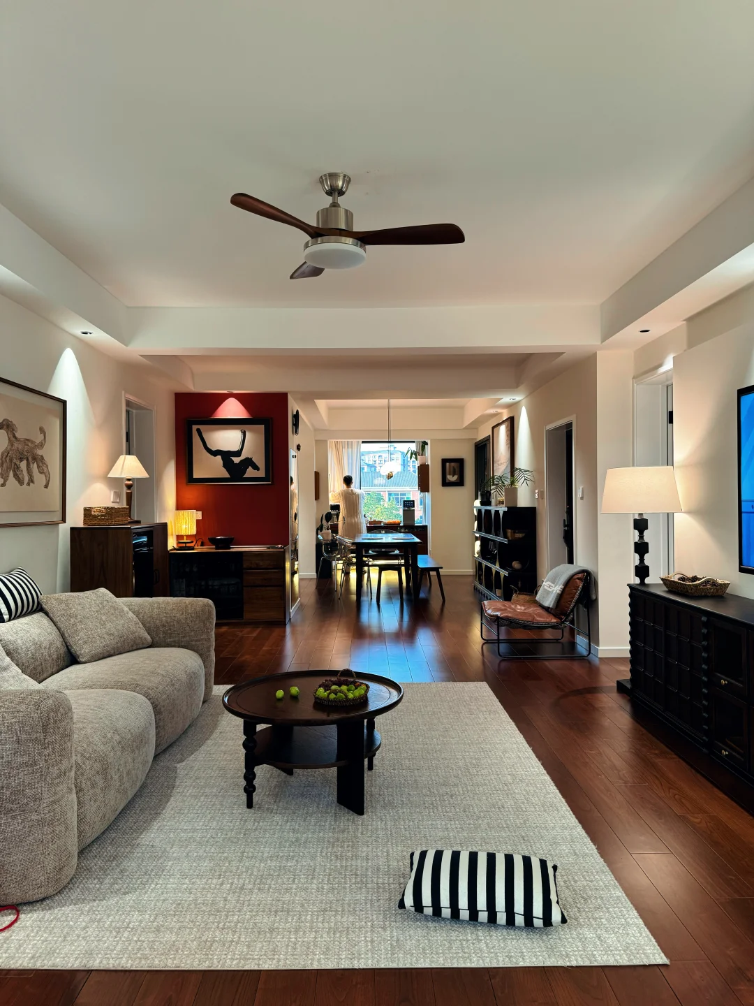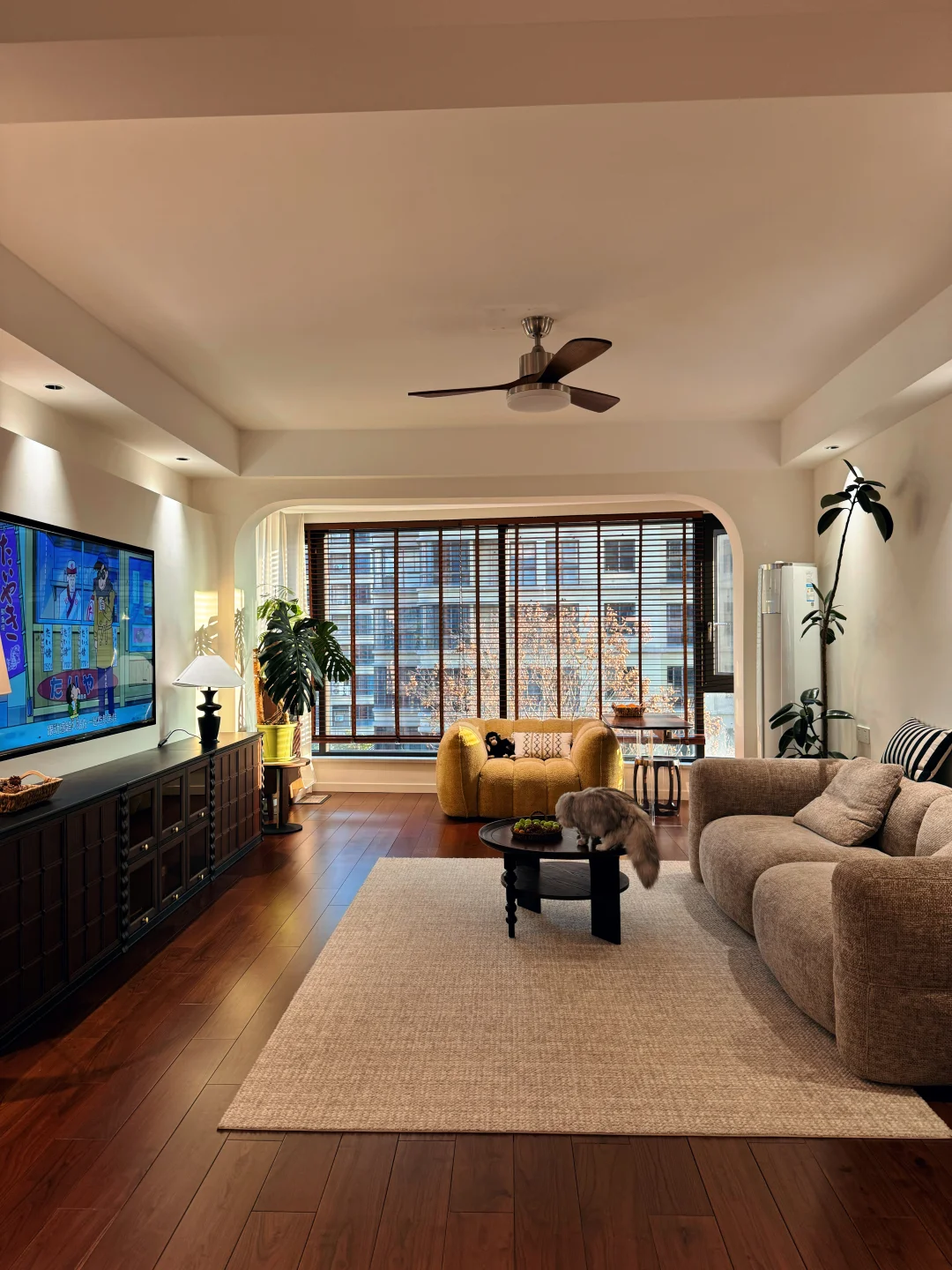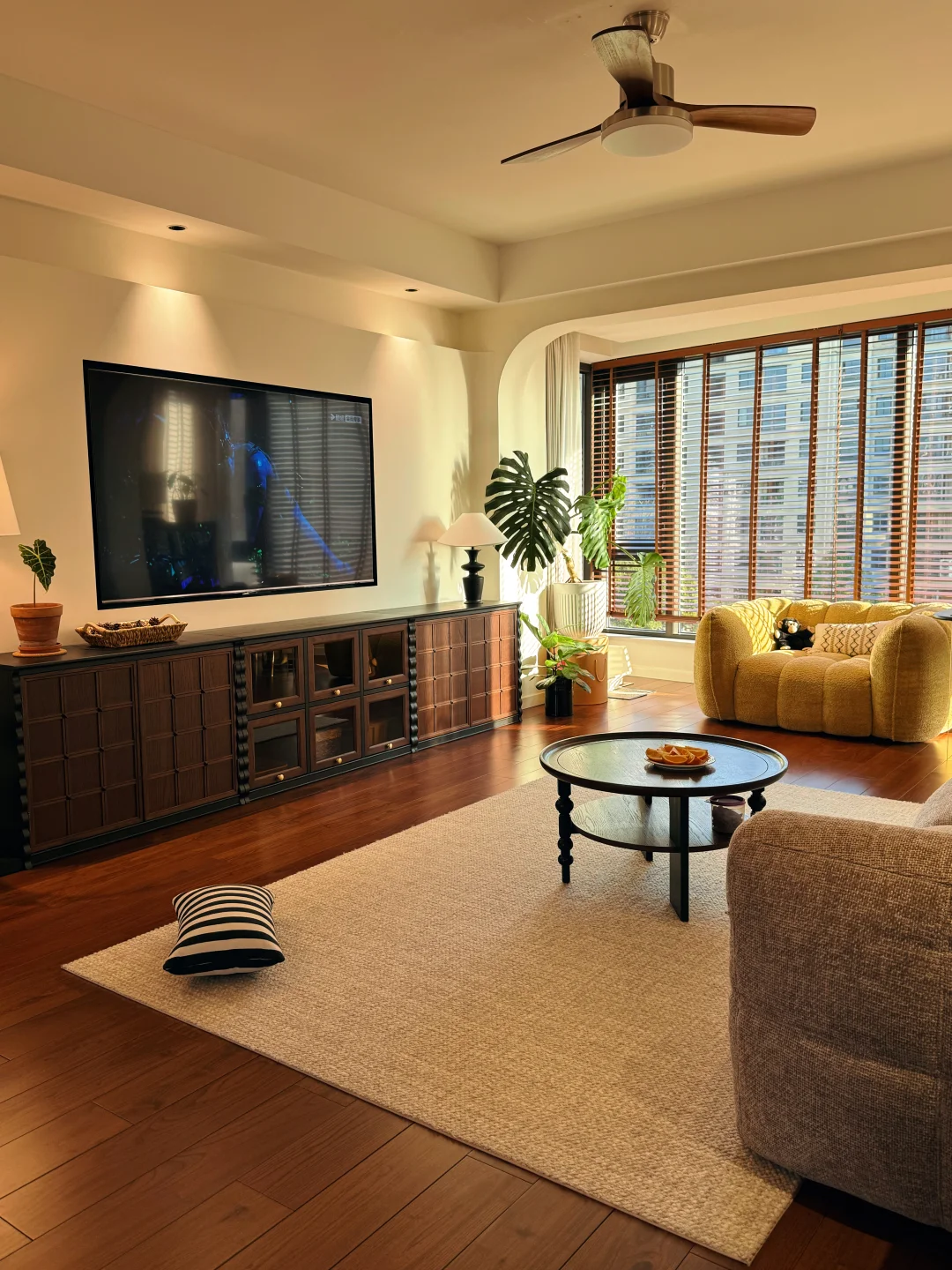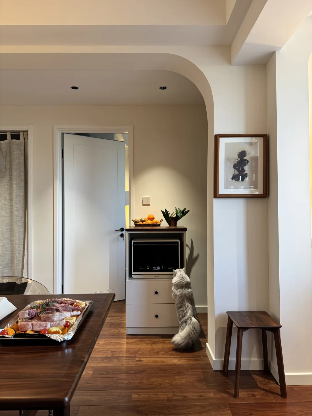 也是在三年前的冬季,马不停蹄看了2个月的房子,毫不犹豫的拿下这套没人要的4楼。虽然楼层比较低,但整体光照充足,能照进整个客厅,窗外还有一棵高大的栾树,所以一年四季都能看到不同的景。 总体还算不错,在我看了几十套房子里,房东也是爽快的人,所以很快成交了。 花了10个月的时间,把它装成我想要的模样,打通阳台做落地窗,通铺木地板,墙面通刷奶白色乳胶漆,所有的房门都选了同一个款式,全屋定制也是选了门的同色系,做了极窄边的设计,显得更有层次感。在硬装上,总体是简约而不简单,材质也很显质感,为我后期的软装进场打下了很好的基础。 到现在入住两年多,我慢慢发现,在这个小家里,装得下我所有的悲喜,生活没有标准答案,适合自己的,就是最好的生活。