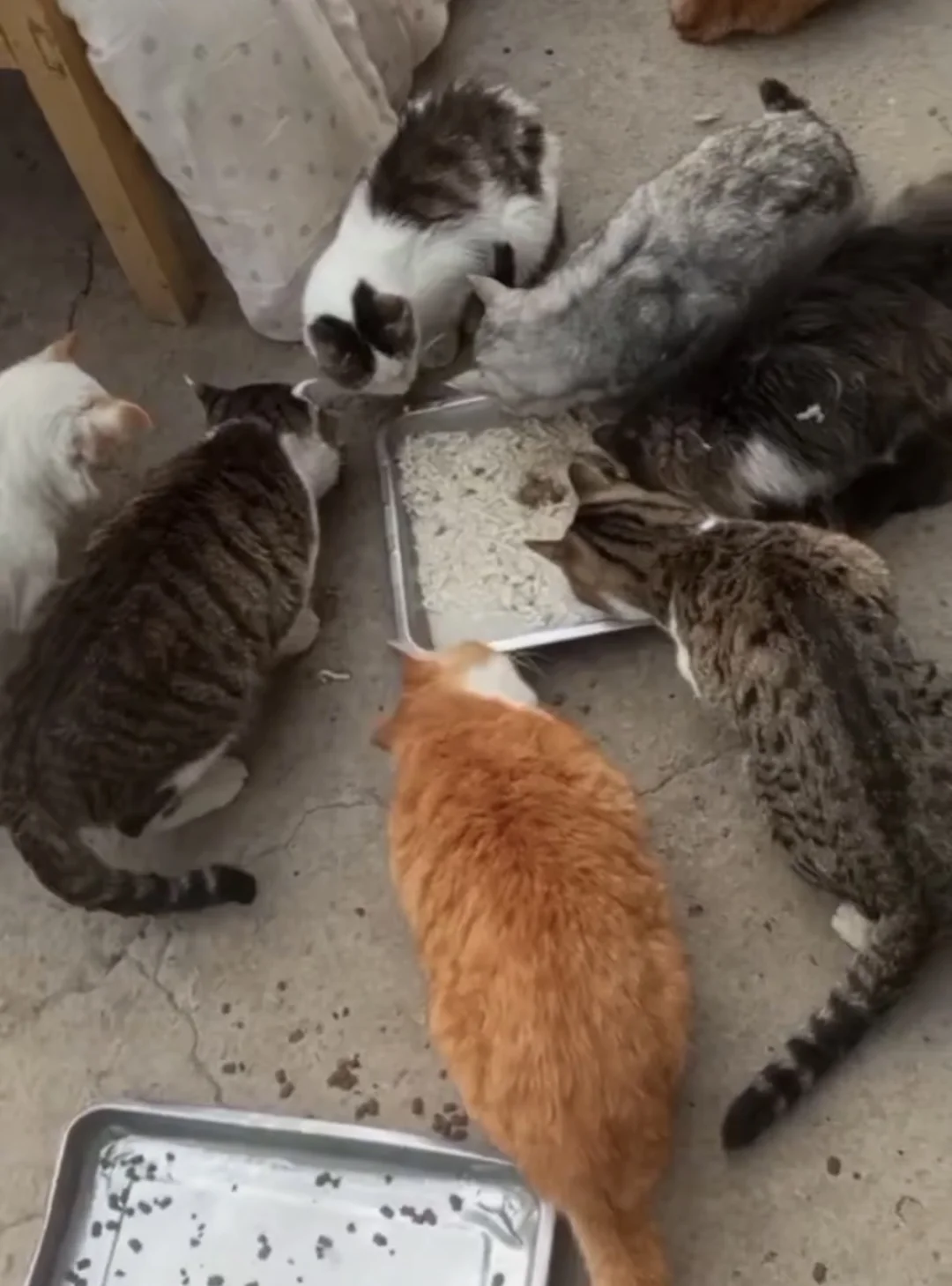 阿姨年纪大了,退休后极其微薄的退休金根本支撑不住任何,基地每天的开销像一座大山。尽管偶尔有爱心人士捐赠各种吃的,但毛孩子们其实已经断粮好久了,阿姨只能带着它们硬扛。