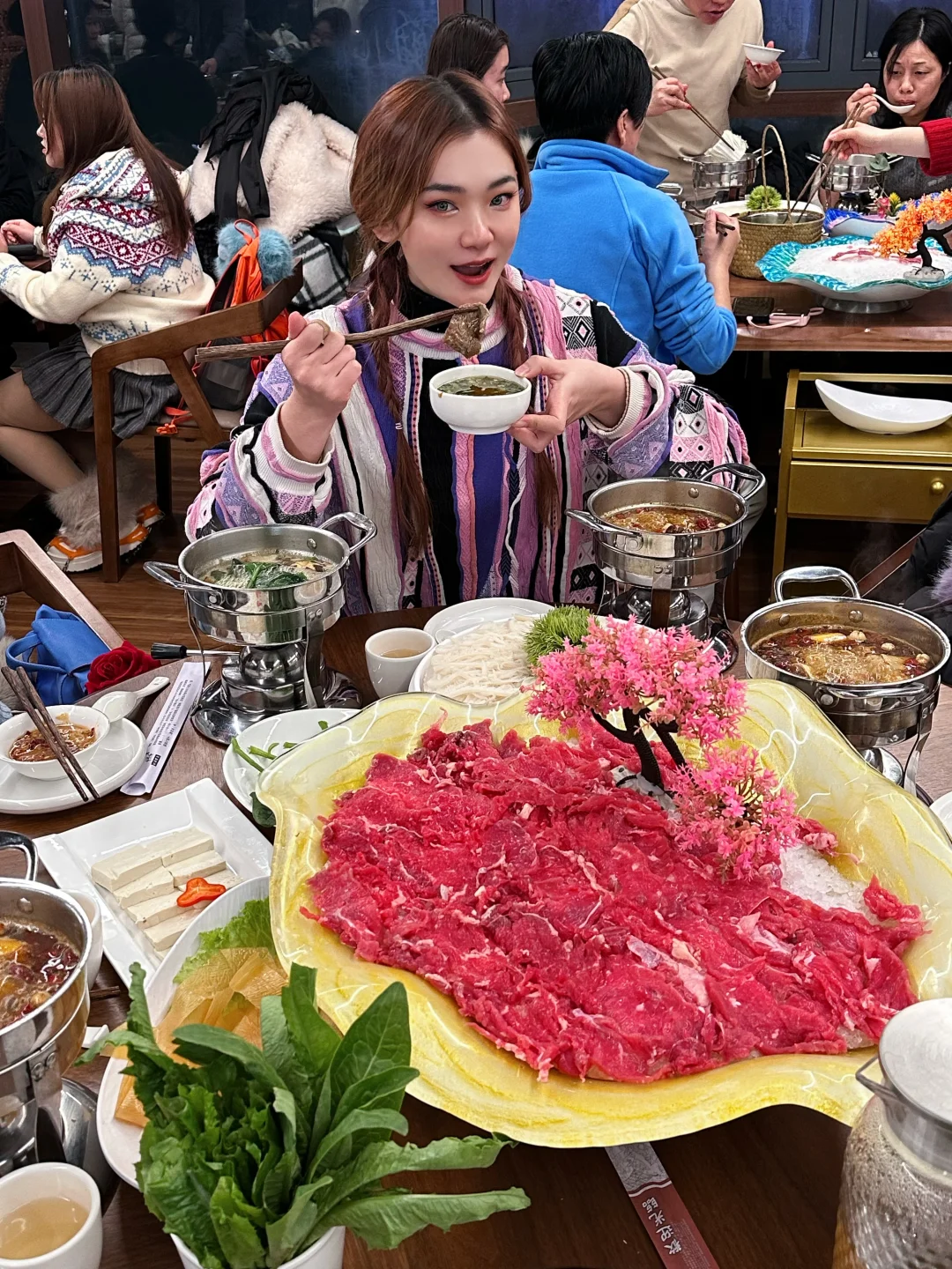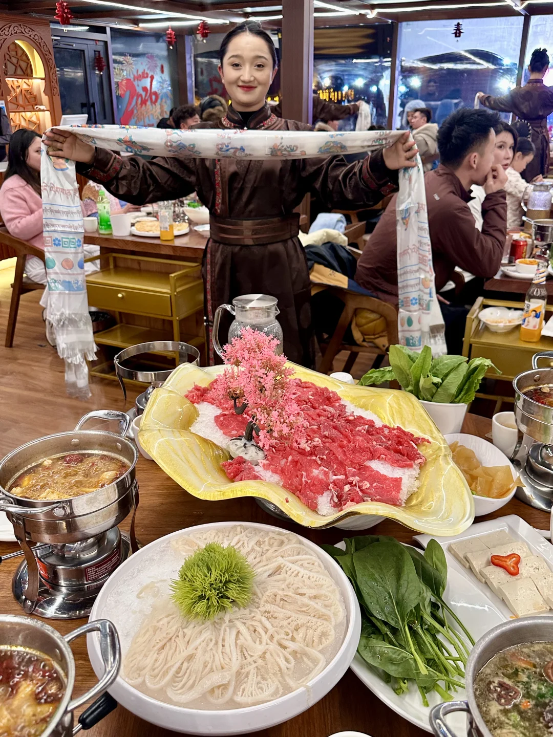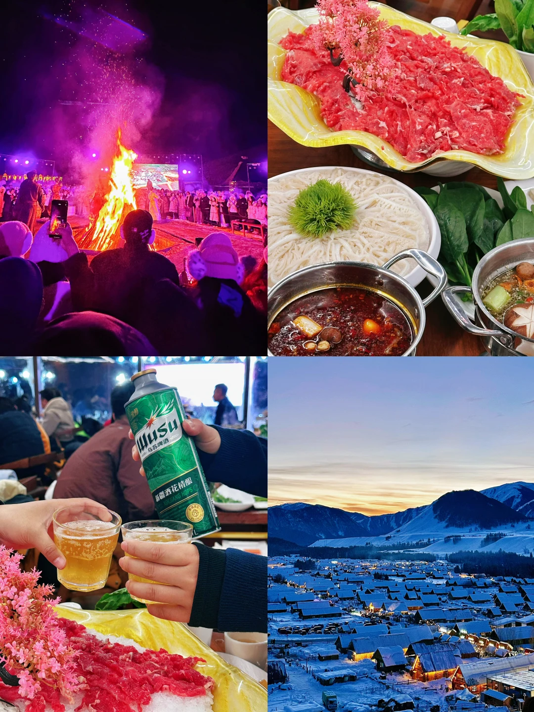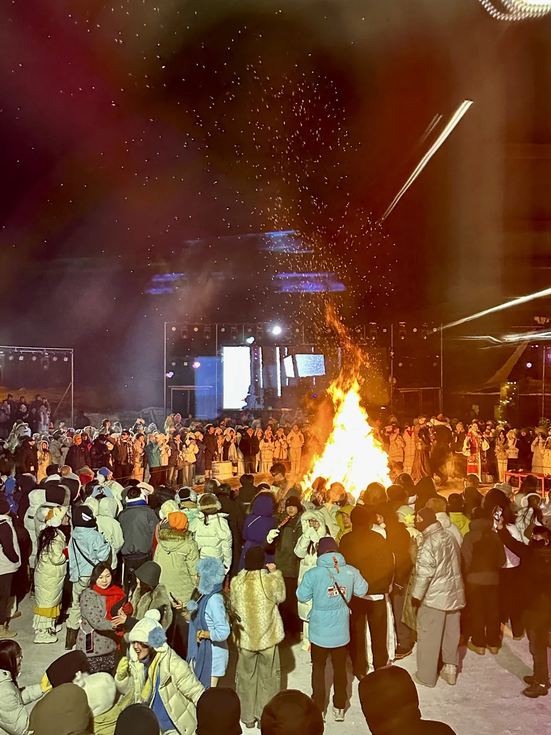 重点夸爆篝火旁的火锅!坐在窗边暖乎乎吃着涮肉,抬头就是跳动的篝火,不用冻成狗就能沉浸式看晚会,幸福感爆棚~