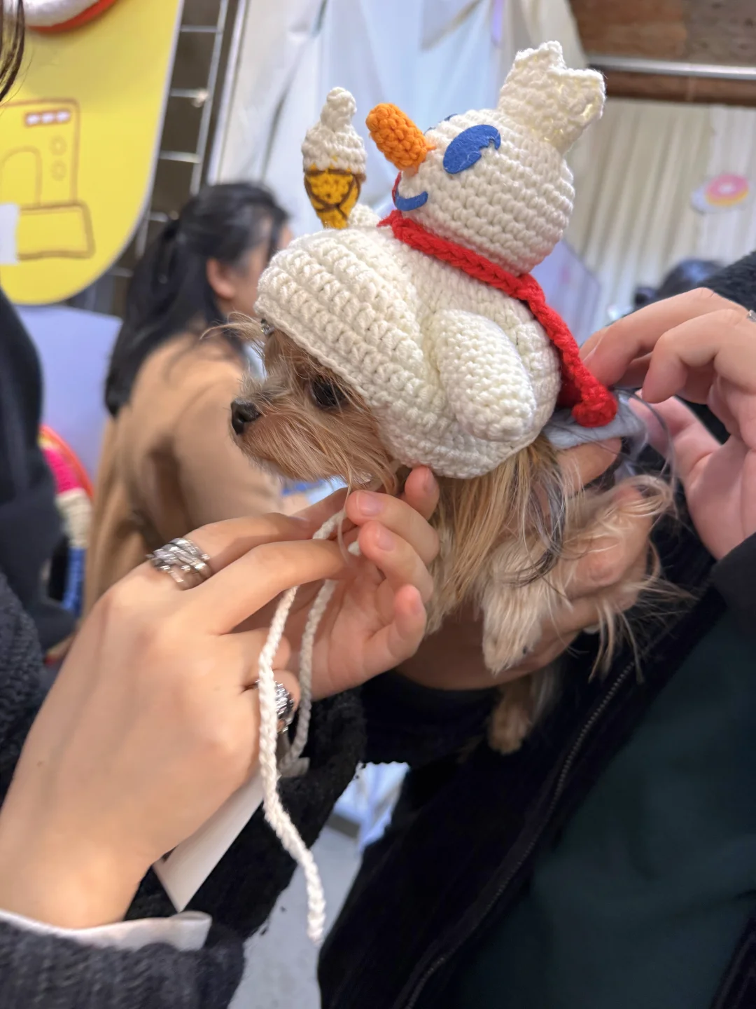 平时会给小狗妹们勾勾小裙子、小帽子和发卡,小红薯刷到聚会就超级激动。给小狗妹们带了最近刚勾的小帽子就加入现场啦,实在太好逛了,眼睛都看不过来了,大家手都太巧了吧[哇R][哇R] 还有漂亮小姐姐给瓜瓜妹带了雪王的小帽子[黄金薯R] 还行吧就亿点点可爱 买到一个超喜欢的蘑菇,开心[喝奶茶R][喝奶茶R]