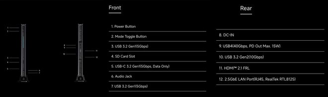 此外,这款迷你主机还提供SD卡插槽、USB-C3.2Gen1、USB4、HDMI2.1、2.5G以太网口等接口,准系统版售价1359美元(IT之家注:现汇率约合9481元人民币),32GB+1TB版本售价1679美元(现汇率约合11714元人民币)。