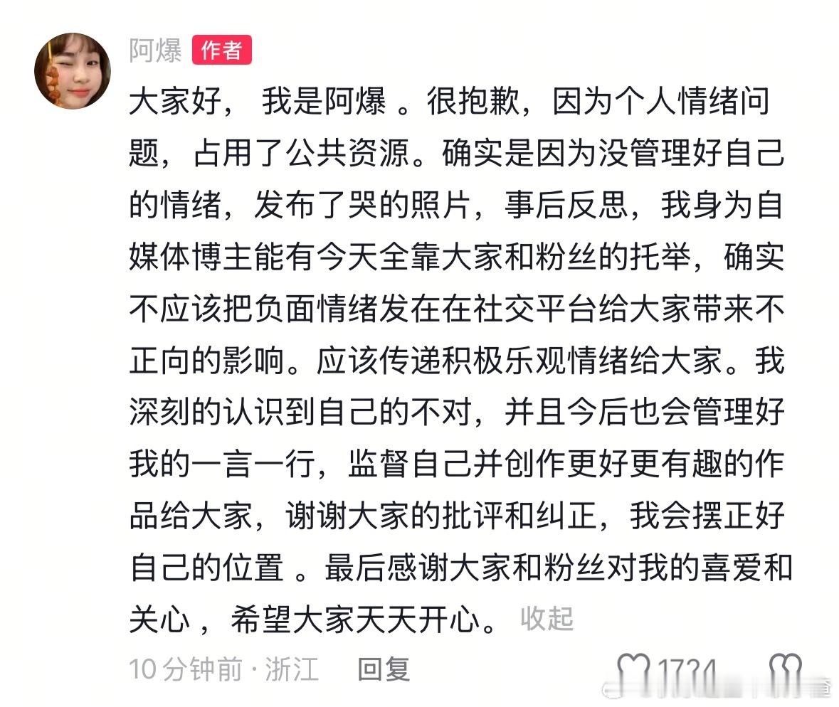 阿爆回应了 阿爆道歉