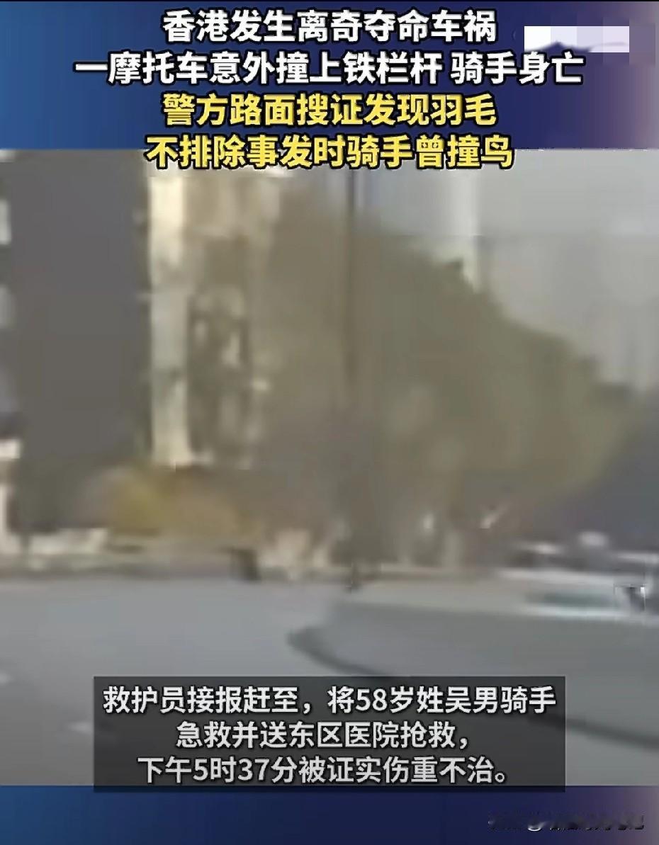 “一只鸟,一条命。” 1 月 19 日下午 4 点 21 分,香港东区走廊。58 岁的吴师傅像往常一样跨上摩托,拧油门、松离合,发动机发出熟悉的轰鸣。 那是他讨生活的节拍器。谁也没想到,1 小时 16 分钟后,他的生命永远停在东区医院的抢救室;更没人想到,现场留下的除了血迹,还有几片灰白的羽毛。 🔺200米刹车痕:车没坏,人没醉,监控里却看见车头前一抹黑影掠过,下一秒铁栏杆变形。 🔺羽毛成分:网友慢放视频,定格画面像极了一只斑鸠大小的小鸟,直接糊进头盔风挡。 🔺致命巧合:机车圈老司机都懂,百码时速碰到半斤重的“空中子弹”,冲击力≈一块砖头,手一抖,车就甩。 香港地少车多,东区走廊时速限制 80,但车流常跑到 100。高架桥底是海,桥上是风,鸟类低空掠过只为觅食或避寒,却被钢铁洪流夹成“三明治”。 羽毛的出现,提醒我们把视线从“谁对谁错”挪开,去审视更隐蔽的“生态错配”。 当快速路像刀口一样切开海岸线,当 LED 广告牌 24 小时亮如白昼,鸟类原有的飞行走廊被一点点吞噬。 它们不会看红绿灯,也不会用导航,只能靠本能穿越,于是“撞鸟”不再是意外,而是城市把自然逼到墙角的必然反噬。 日常潜伏的危机,像无色无味的雾气,摸不着,却始终如影随形。对油门多一分敬意,对归途多一秒守候,哪怕只是去买把青菜。愿大家高高兴兴出门,平平安安回家。(图源网络)