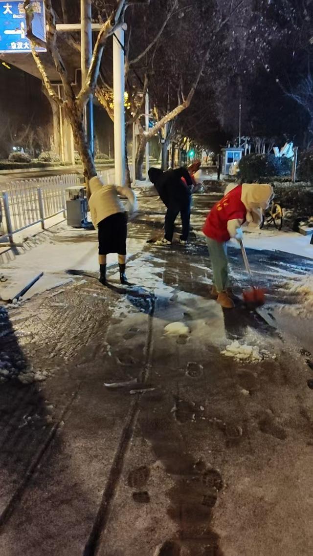 雪不消、人不退。各社区(村)闻令而行、闻雪而动,忙碌在大街上、小巷里,有的脸颊、眉毛结了冰、落了雪,有的衣服被汗水已经浸湿,但大家无怨无悔,毫不退缩,只想在寒冷天气开出一条路,暖暖辖区居民们的心。
