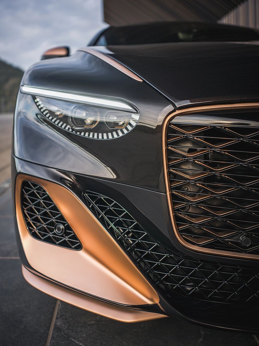 宾利Batur「黑玫瑰」独一无二的宾利Batur「黑玫瑰」本可以成为一件精致的艺术品,但它却选择驶上日本的冬日道路,点亮这片风景。 Mulliner部门仅打造了18台Batur,每一台都是专属定制的孤品。「黑玫瑰」首次在行业内采用3D打印的复杂玫瑰金材质打造内饰控制部件。 车身下部采用专属定制的「黑玫瑰」金属漆,在光线下呈现细腻的闪烁效果,搭配Beluga黑色车顶。玫瑰金装饰贯穿门槛、通风口、格栅、腰线饰条——甚至在可升降尾翼的底面也有隐藏的玫瑰金细节,堪称惊喜彩蛋。 传统手工匠艺与宾利前瞻性的设计语言、工程技术在此相遇。它风格大胆却克制内敛,完美契合轻井泽的冬日景致与现代建筑。日本文化中对传统与高科技的和谐尊重,也与这台车的精神内核不谋而合。