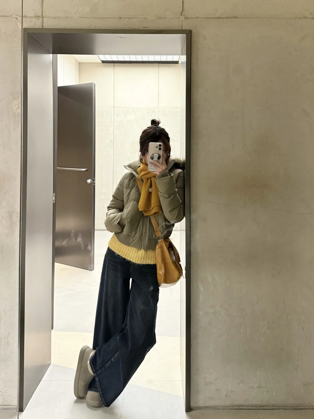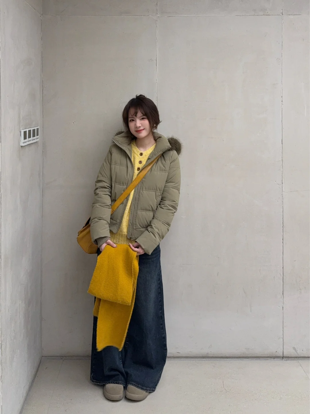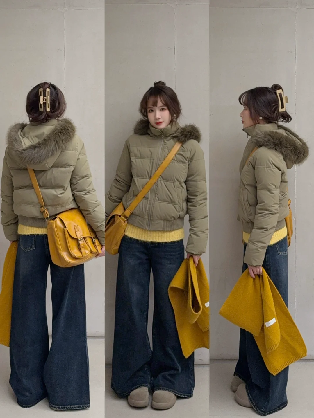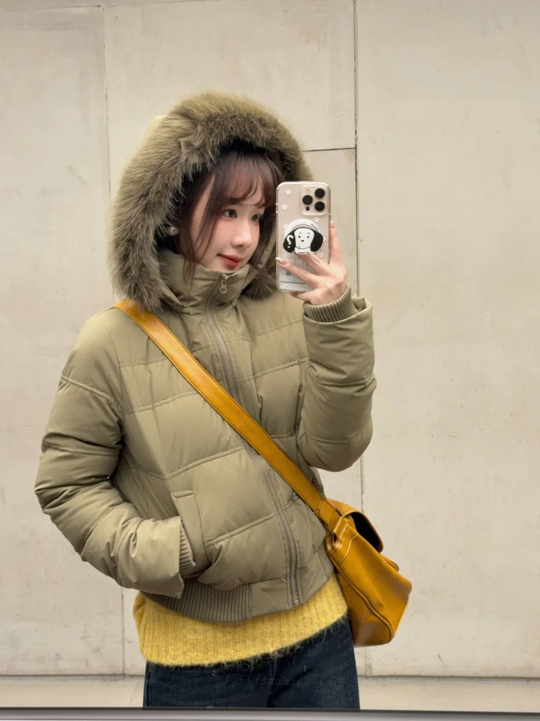 卡其绿的羽绒服还可以搭配