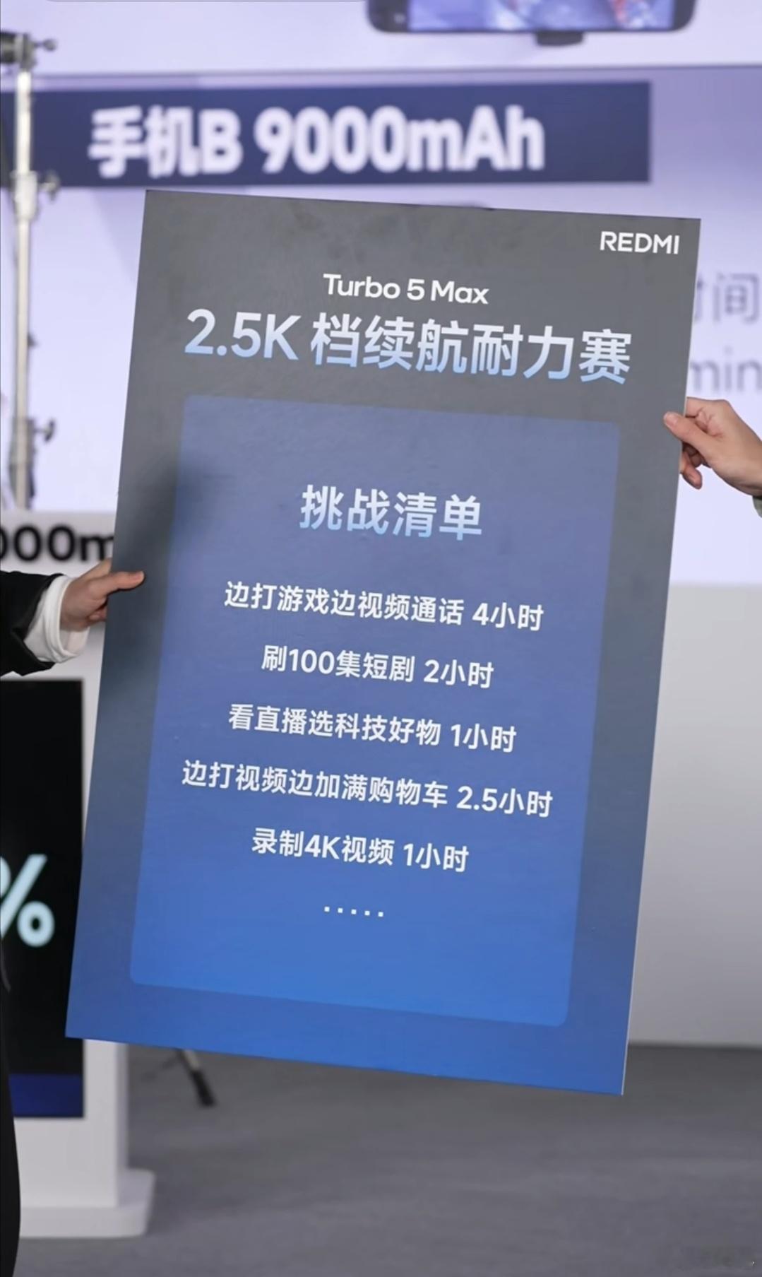 Turbo5Max五年电池保 手机用久了就容易出现电池衰减导致续航变差不仅影响日常使用,外出还还得带上充电宝。我就说现在手机电池必须越来越大才行,REDMI Turbo 5 Max这次直接瞄准续航带来了9000mAh超大容量金沙江电池,从物理层面大幅延长手机续航,甚至高调表示要带来「五年电池保」承诺。这意味着,在相当长的使用周期里,你无需担心电池健康度下滑带来的体验降级和隐性成本,你就安心用,狂用,狂打游戏,随便用,REDMI有信心让你的手机续航一直保持持久力。