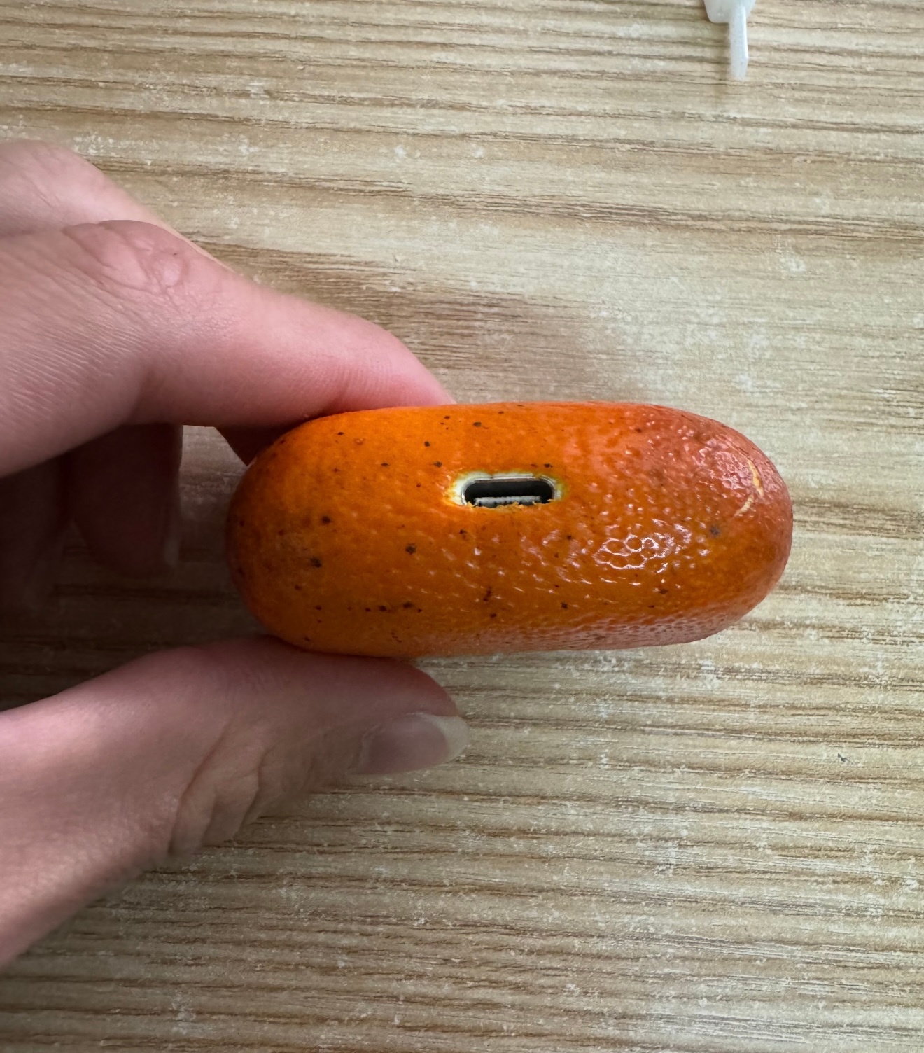 一位网友发明的橘子皮耳机壳环保耐磨还带着一股橘子清香记得吃完的橘子皮千万别扔做个