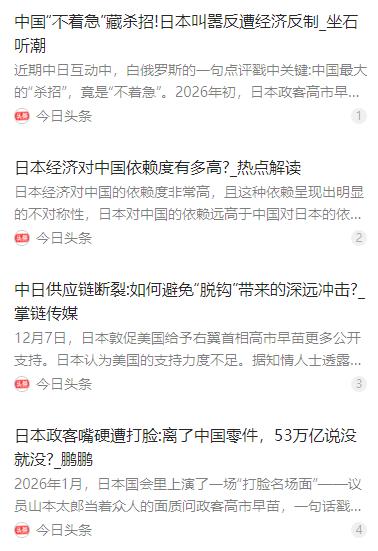 日本彻底坐不住了!山本太郎在国会上质询高市早苗,“就算不开战,只要两个月,从中国进不到零部件,损失就是53万亿日元,经济打击一样会死人!” 麻烦看官老爷们右上角点击一下“关注”,既方便您进行讨论和分享,又能给您带来不一样的参与感,感谢您的支持! 2026 年 1 月,日本国会的一场质询引发全网关注,反对派议员山本太郎的发言直接戳破了日本政府的外交硬气伪装。他当着首相高市早苗的面抛出关键警告,若持续两个月无法从中国进口关键零部件,日本将面临 53 万亿日元的巨额损失,这一数字相当于日本全年 GDP 的十分之一,这样的经济冲击对民生的杀伤力不亚于战争。 这并非危言耸听,而是基于日本经济对中国供应链的深度依赖。作为日本最大的贸易伙伴,2024 年中日双边贸易总额达 3083 亿美元,中国既是日本重要的出口市场,更是其产业链不可或缺的供应端。日本从中国进口的商品占其总进口的 23.6%,远超中国从日本进口的 6.4%,这种依赖呈现明显的不对称性。 在关键产业领域,这种绑定更是深入骨髓。日本汽车产业作为经济顶梁柱,60% 的关键零部件和 42% 的半导体材料依赖中国供应,自动变速器等核心部件对华出口占比高达 79%。半导体领域 56% 的材料进口自中国,光刻胶等核心品类暂无成熟替代渠道,而新能源汽车所需的重稀土更是 100% 依赖中国。 山本太郎的质询并非空穴来风,背后是高市早苗政府的一系列激进政策。2025 年 11 月,高市早苗在预算委员会中声称台湾问题可能构成日本 “存亡危机态”,暗示可能动用自卫队,这一言论引发中日关系紧张。同时,日本政府持续强化美日同盟,在产业链政策上推动 “去中国化”,试图构建所谓 “可靠伙伴国” 供应链体系。 政策的连锁反应很快显现,中方从 2026 年 1 月 6 日起收紧相关出口管制,1005 项两用物项被纳入管控范围,还堵死了第三方转运的漏洞。这让本就承压的日本产业链雪上加霜,众多企业不得不紧急评估供应链风险,寻求替代方案成为行业共识。 2025 年以来,已有不少日企开始行动。电子元件制造商 TDK 宣布将部分生产线转移至东南亚和印度,汽车巨头丰田、本田也加快在印度的产能扩张,计划将其打造为电动车出口基地。但这些转移并非易事,搭建成熟的替代供应链至少需要 2-3 年,短期内根本无法缓解对中国的依赖。 东京大学经济学教授佐藤直人等专家公开认同山本太郎的判断,他们指出供应链中断的冲击会迅速传导至各个领域。以 2011 年东日本大地震为例,当时局部供应链中断就导致日本制造业大面积停摆,而如今对华供应链的依赖度远超当年,一旦完全断裂,后果将更为严重。 经济学家测算,若失去中国关键物资供应,日本 GDP 年均将损失 1.2%-1.5%,可能导致超 1000 家中小企业倒闭,相关产业失业人数或突破 30 万。民生层面的影响也已显现,2026 年日本预计有 1.5 万种食品涨价,平均涨幅达 14%,智能手机、家电等产品价格也可能上涨 20%-30%。 事实上,部分行业已经尝到了苦头。2025 年 11 月,日系车在华销量同比暴跌 15.2%,订单量骤降 40%,仅汽车产业就造成 5200 亿日元损失。中方发布旅游安全提醒后,日本热门航线 48 小时退票率飙升至 70%,黄金季 8000 亿日元的中国游客收入化为泡影。 日本社会对政府的政策方向也产生了明显分歧。支持强硬路线的群体认为应优先考虑国家安全,通过联盟对抗降低地缘政治风险;而更多民众和企业则担忧经济民生受损,希望政府能采取务实政策。这种分歧在国会辩论、媒体评论和街头民调中都有体现,成为日本当前的重要社会议题。 山本太郎在质询中呼吁,政府必须在国防外交与经济民生之间找到平衡,不能顾此失彼。他提出的解决方案包括推进供应渠道多元化,在东南亚、印度等地逐步建立备份产能,同时强化国内关键产业的生产能力,减少单一依赖带来的风险。 但专家也指出,供应链重构需要巨额投入和时间积累。日本国有融资机构 JBIC 已将融资重点转向 “经济安全” 相关项目,优先支持在美国等经济体的供应链建设,但这意味着企业要承担 30%-50% 的额外成本,短期内会进一步挤压利润空间。 更现实的问题是,即便部分生产环节迁出中国,很多日本企业仍离不开中国的中间产品。不少流向东南亚的新供应链,依然需要从中国进口核心零部件和原材料,只是下游加工环节分散化,无法从根本上摆脱依赖。 对于日本而言,当前的困境本质上是地缘政治博弈与经济规律的冲突。中国作为全球供应链的核心环节,在稀土、镓锗等关键材料和零部件领域的优势,短期内难以被替代。高市早苗政府的强硬政策,看似提升了外交姿态,实则让本国经济和民众付出沉重代价。