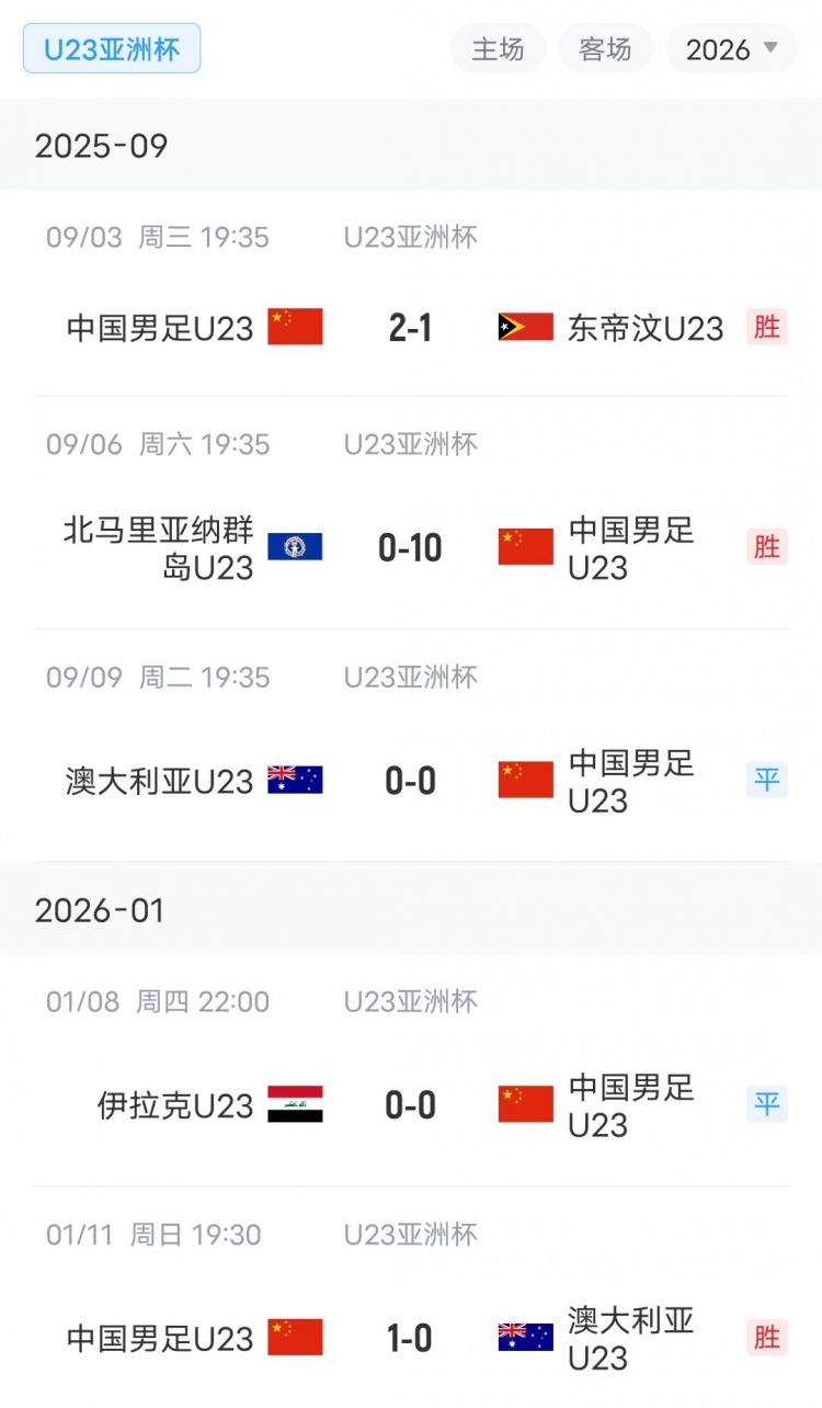 迄今为止,算上预选赛和2026年u23亚洲杯正赛所有比赛,只有东帝汶队攻破过中国队球门。