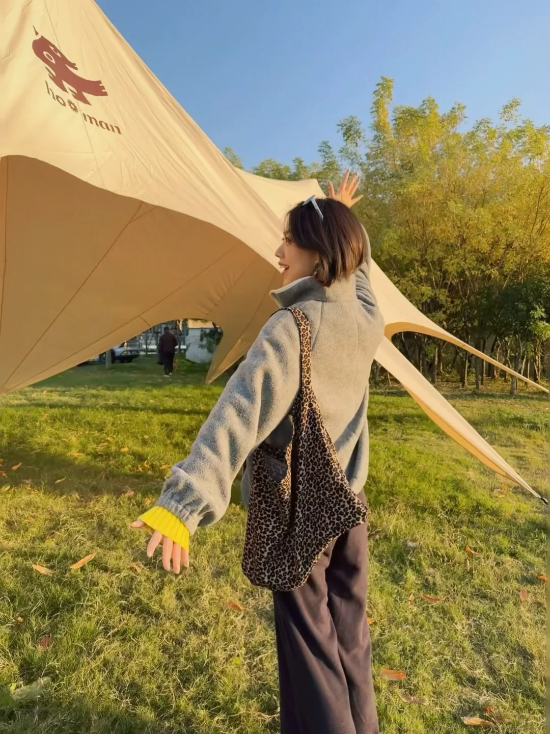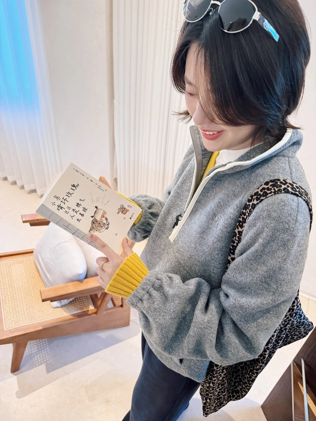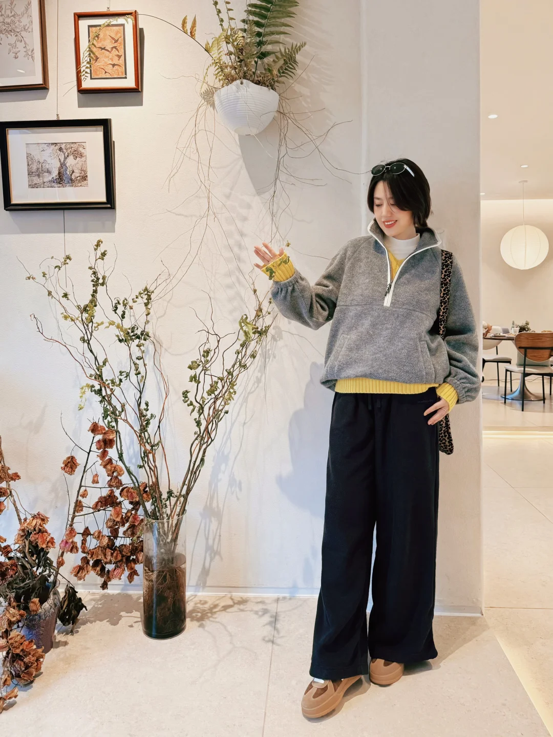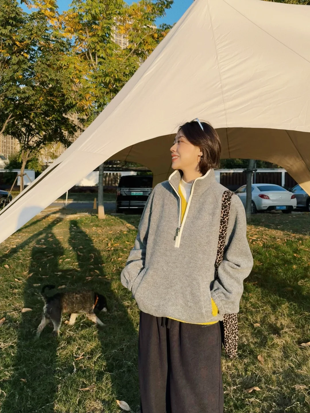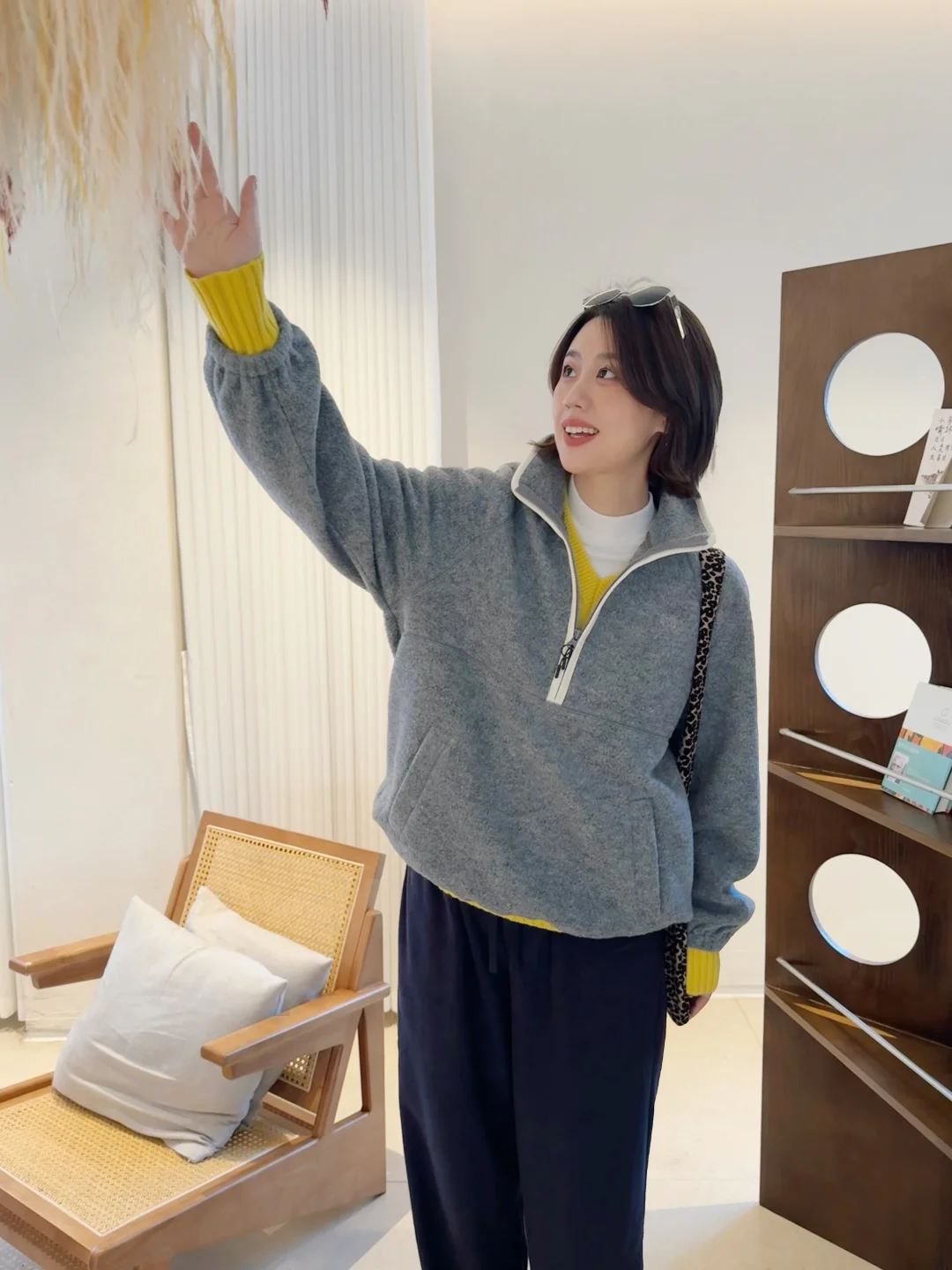 舒适的阳光洒在身上瞬间不焦虑了 简简单单套一件摇粒绒出门~ 叠穿亮黄色的针织敲温暖