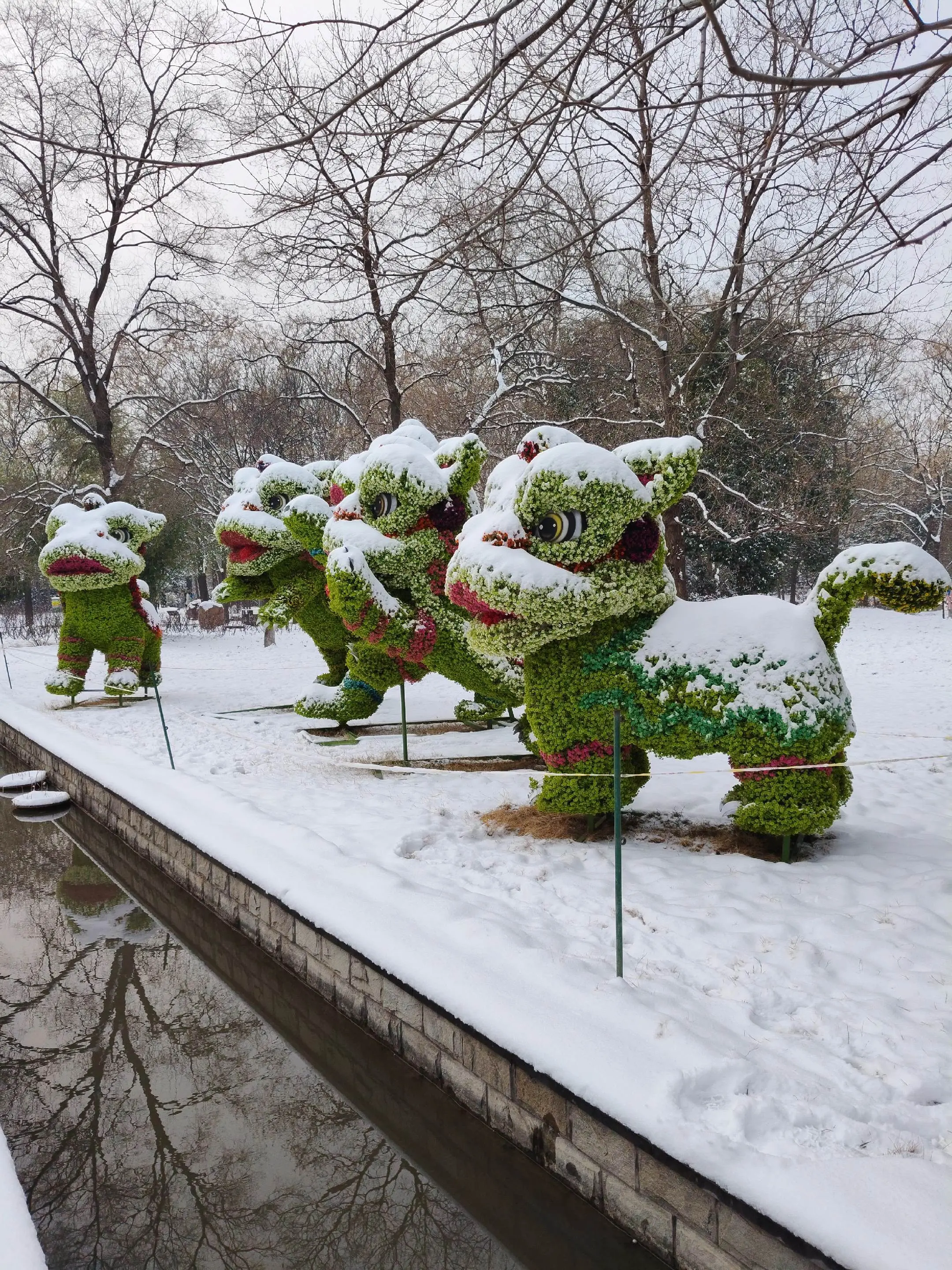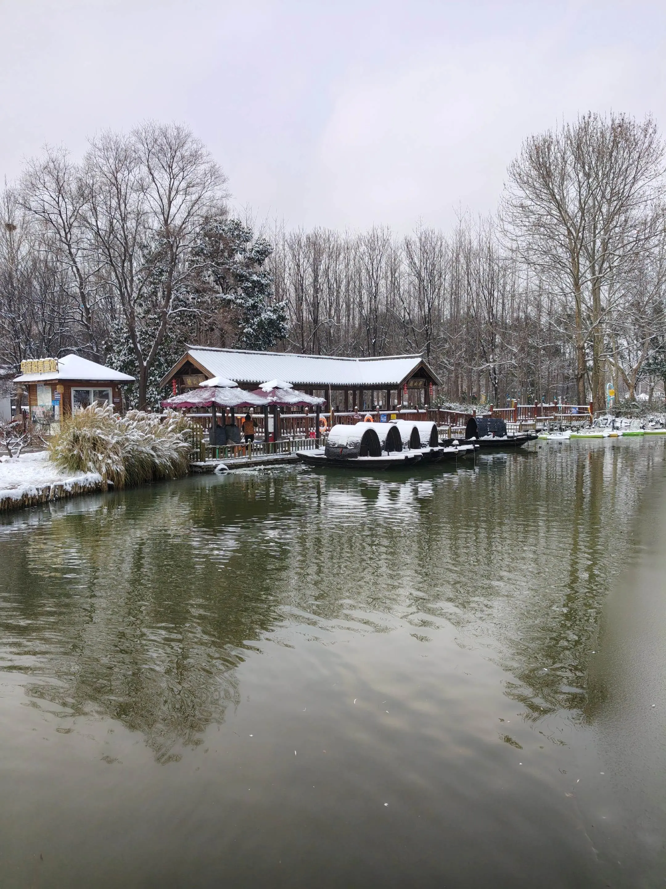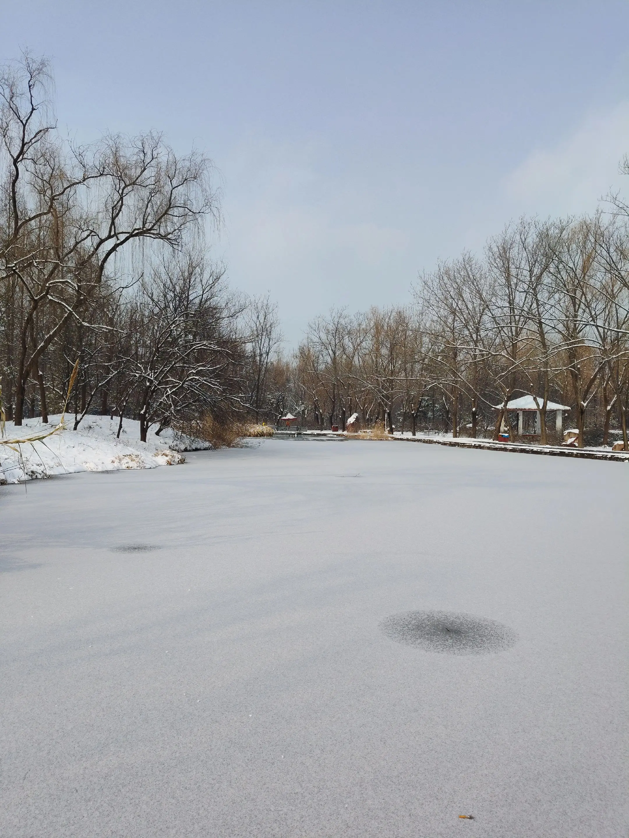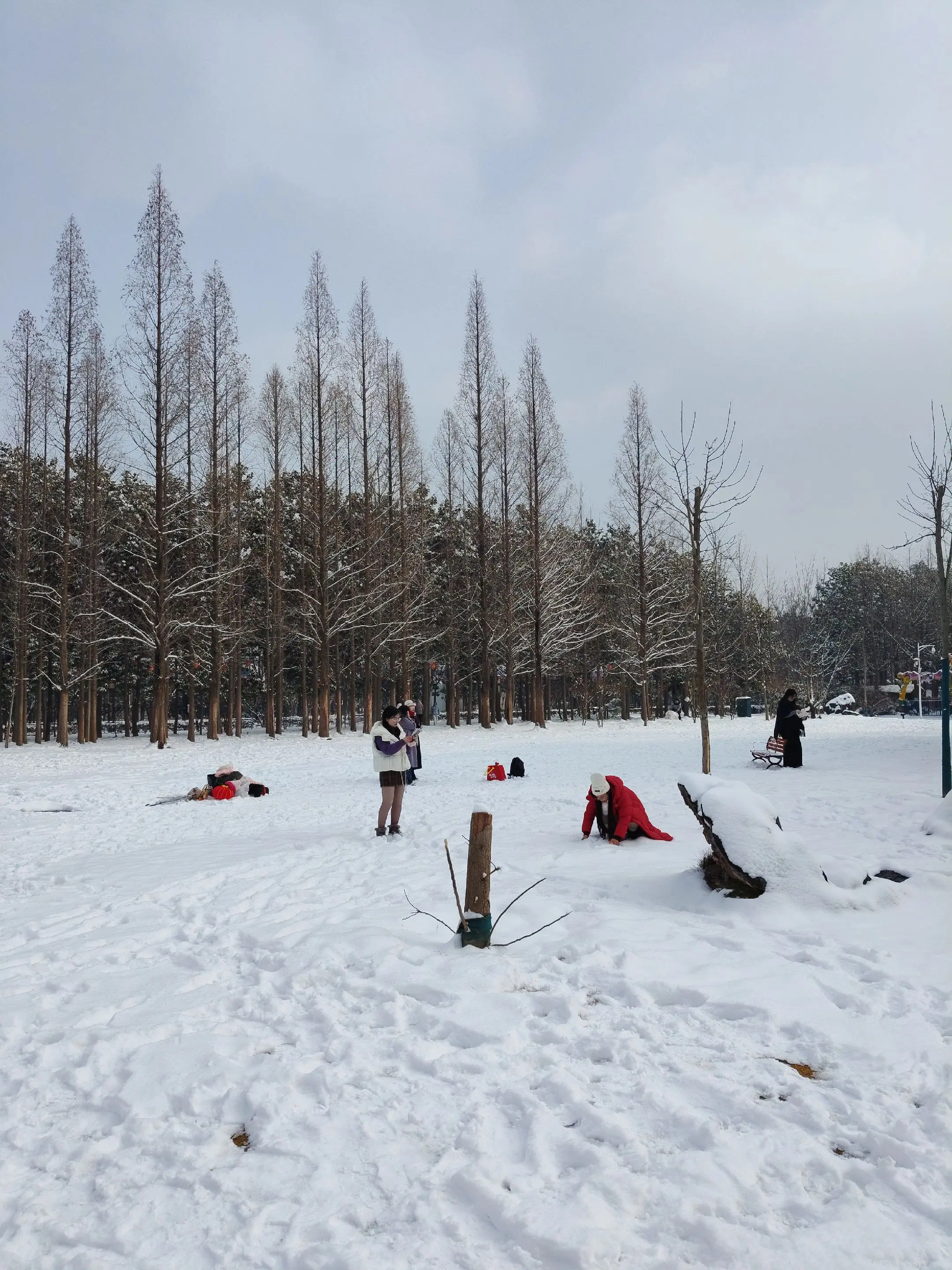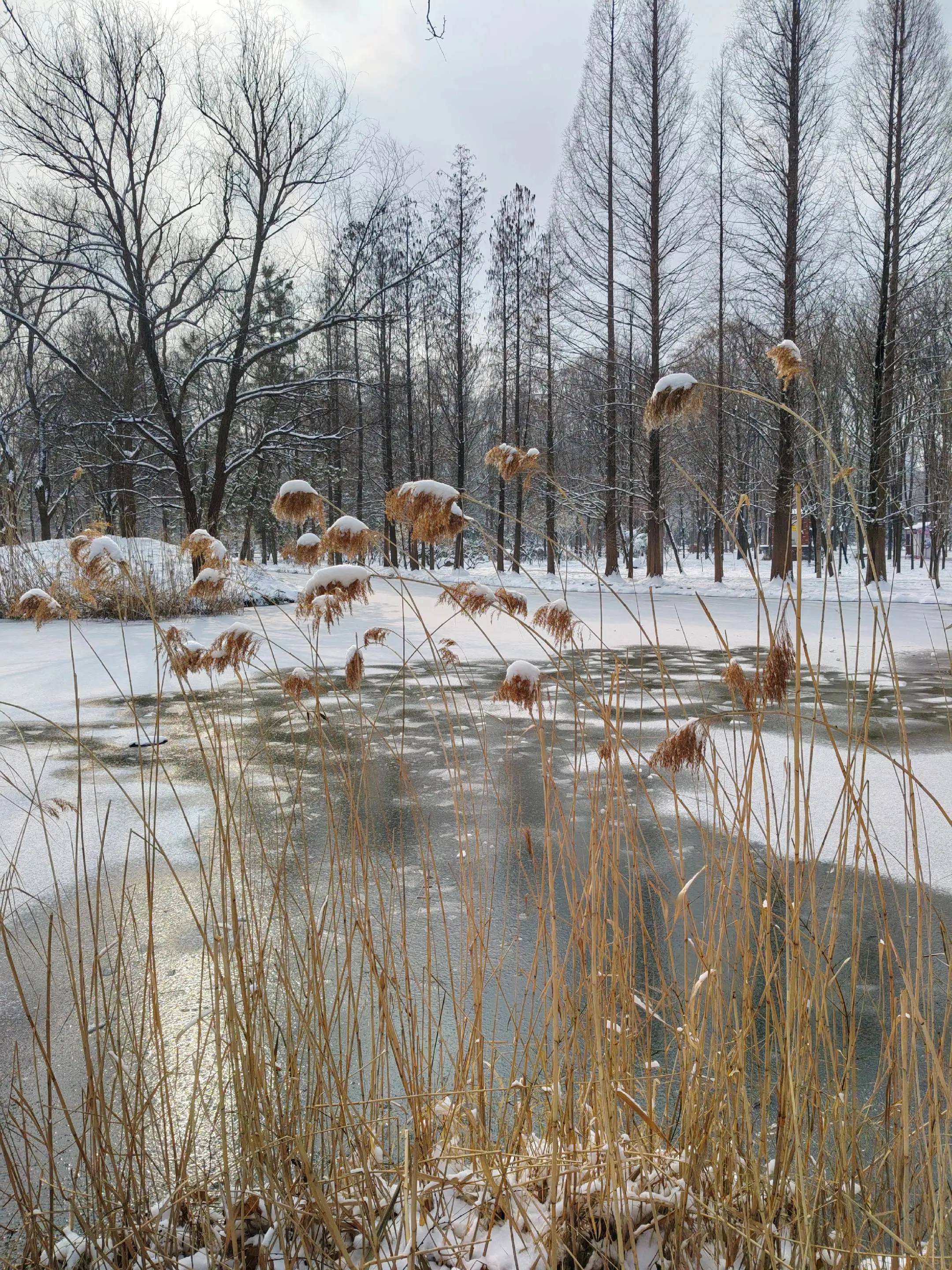 雪中隋唐植物园靓又美。 雪中的隋唐洛阳城遗址公园,白雪与彩...