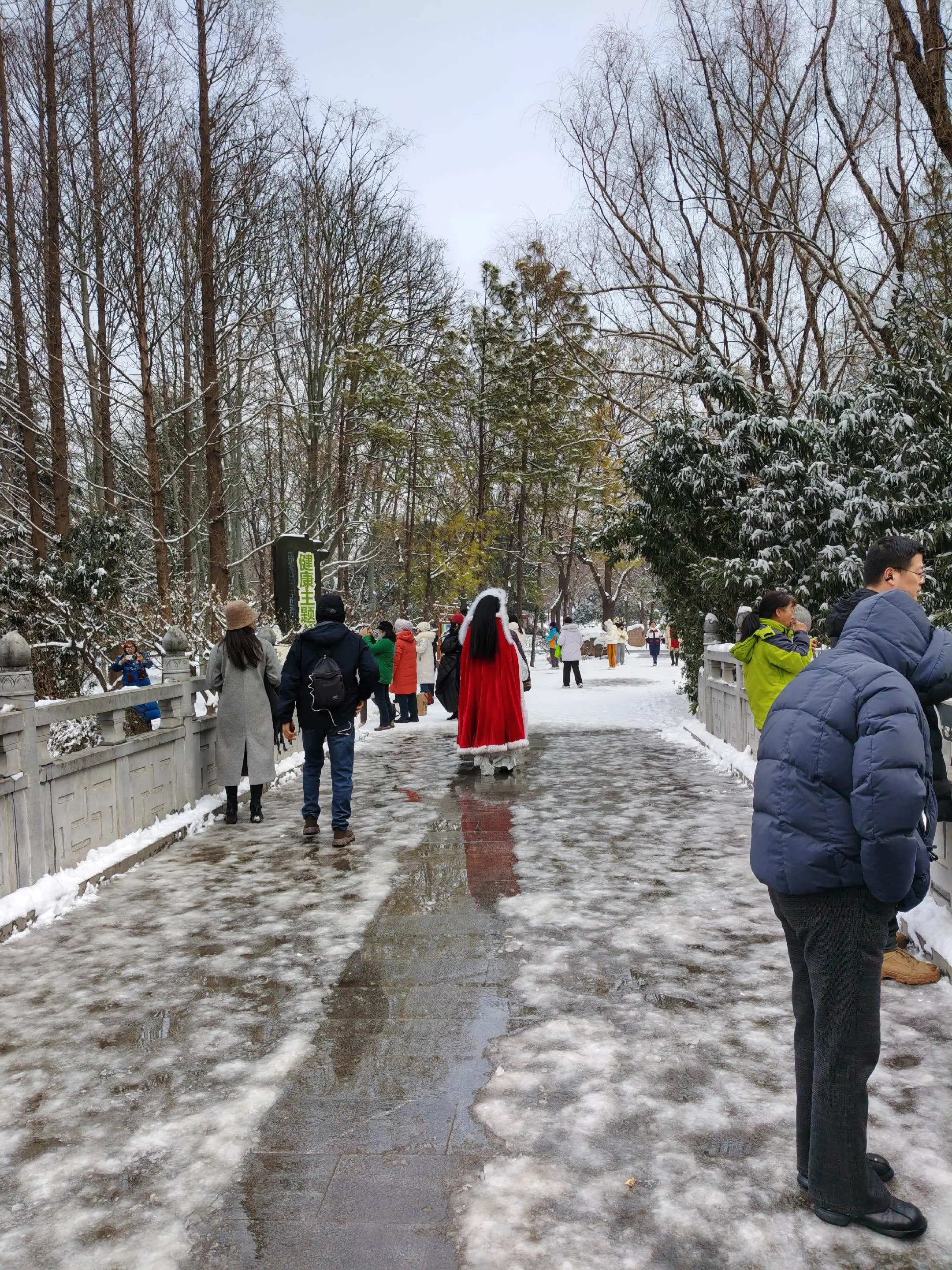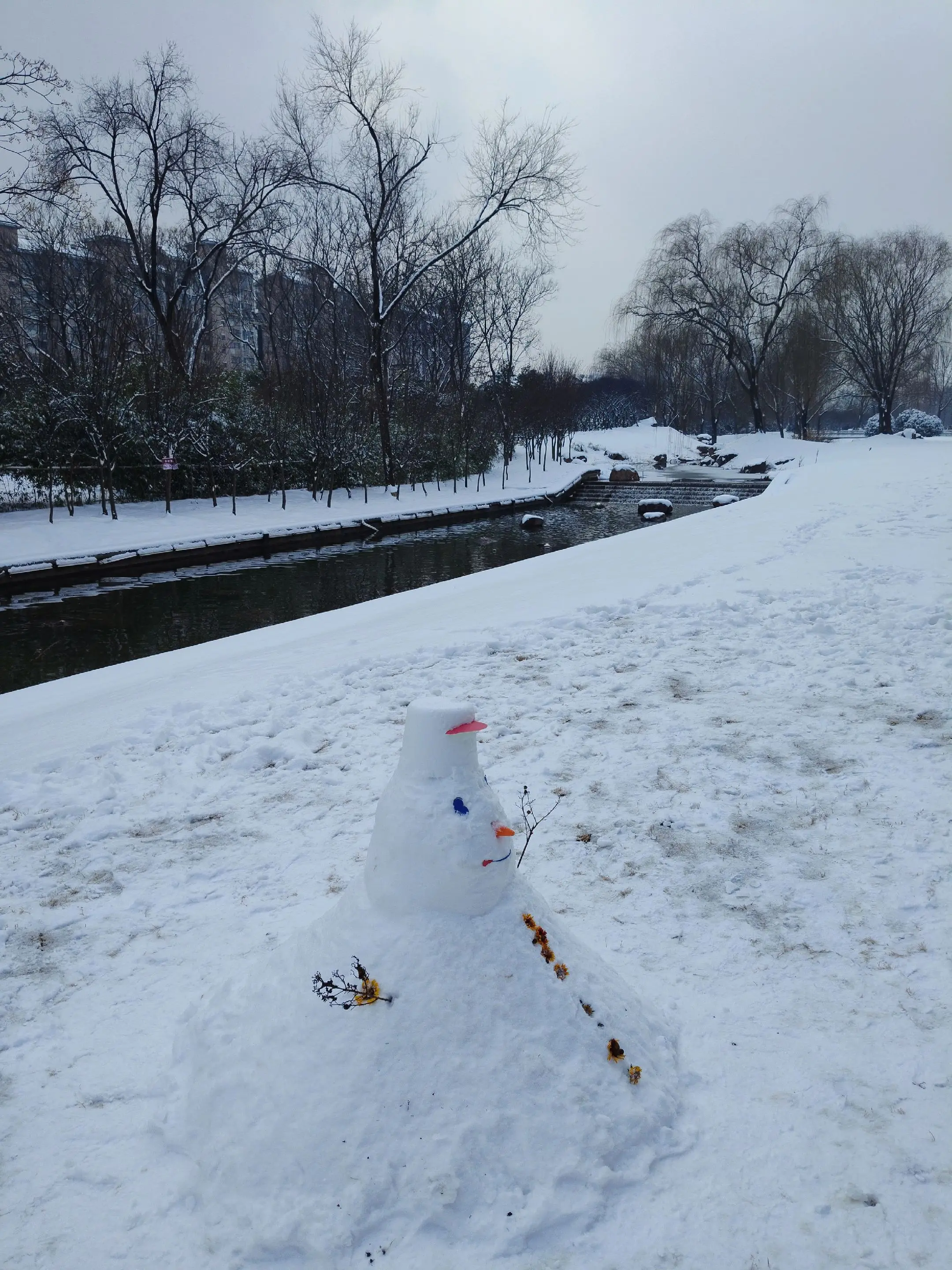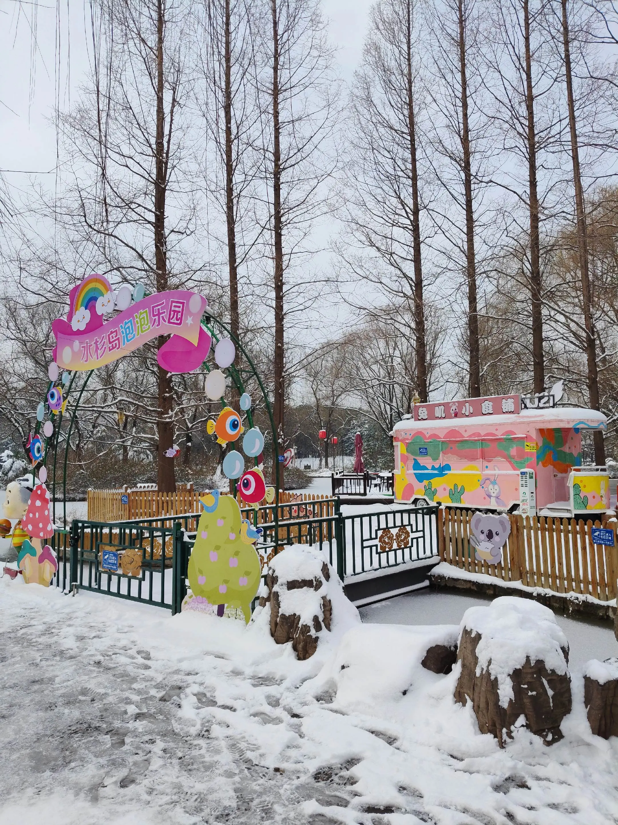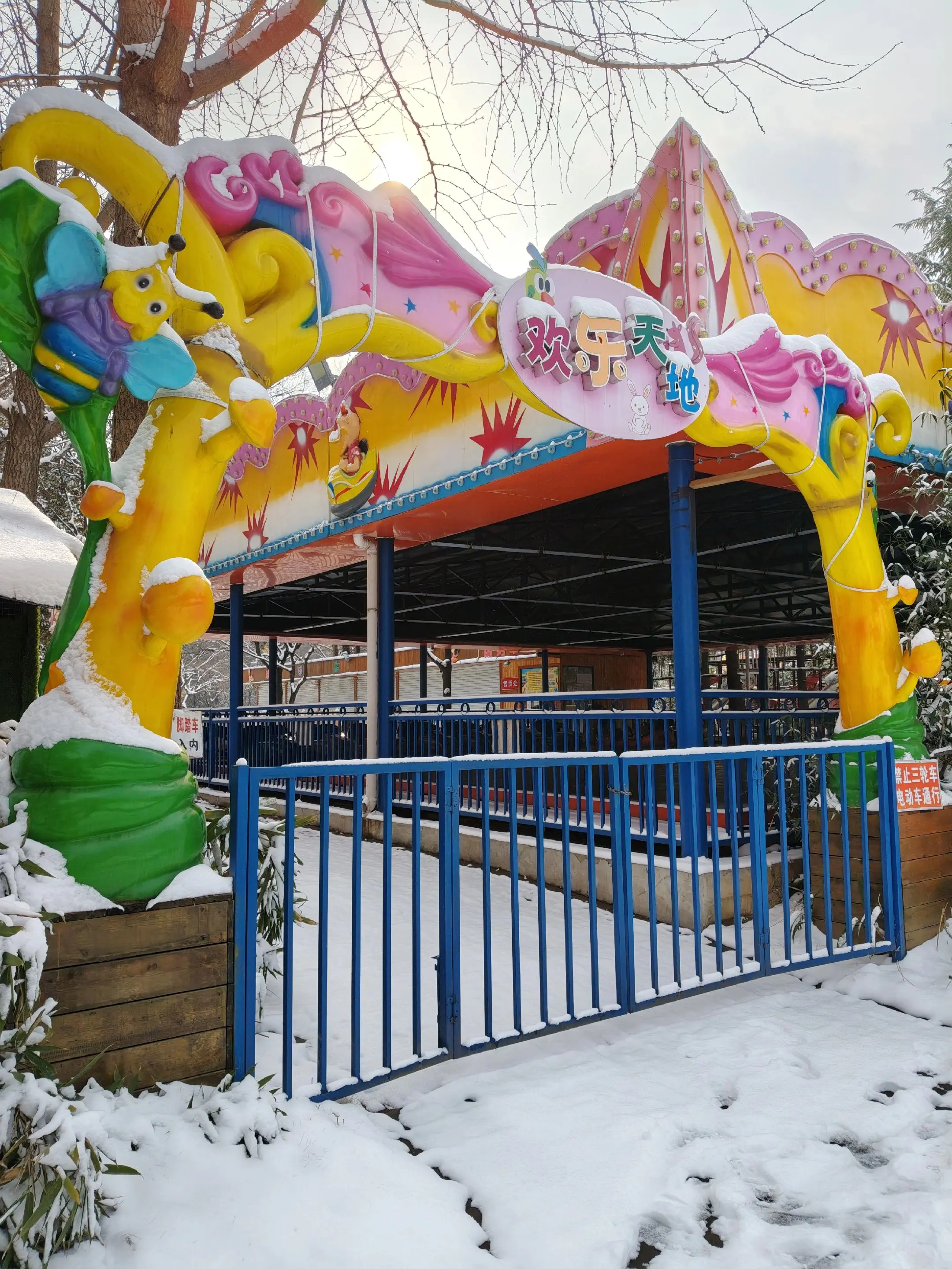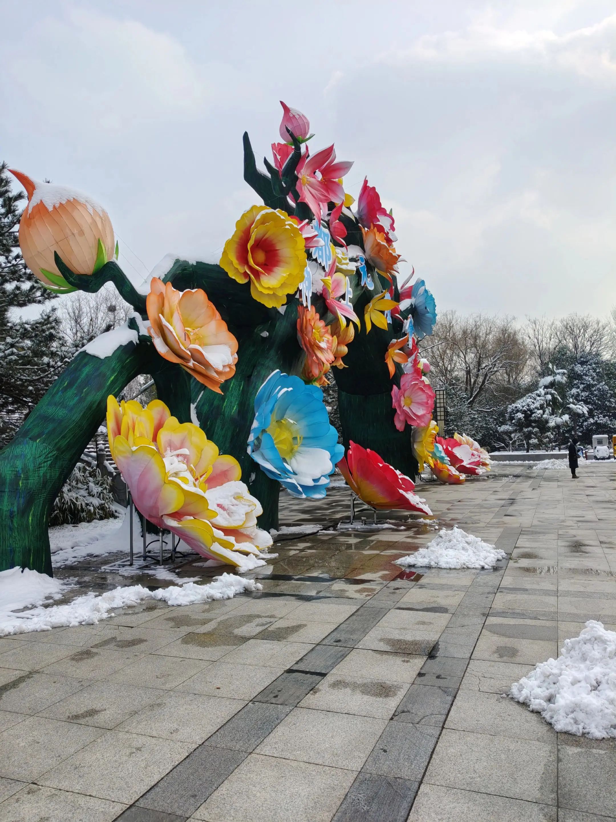 雪中隋唐植物园靓又美。 雪中的隋唐洛阳城遗址公园,白雪与彩...