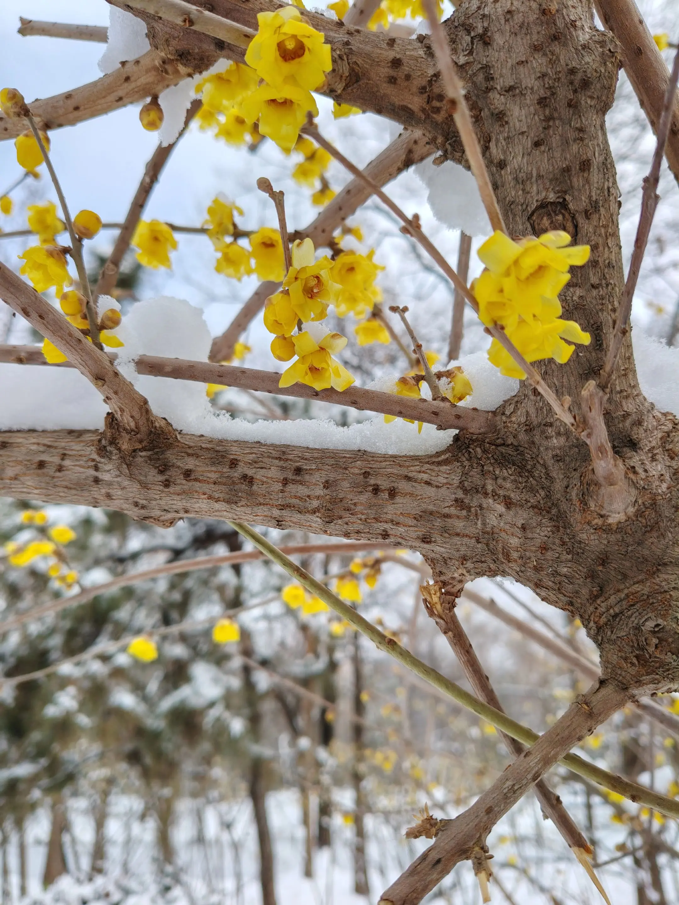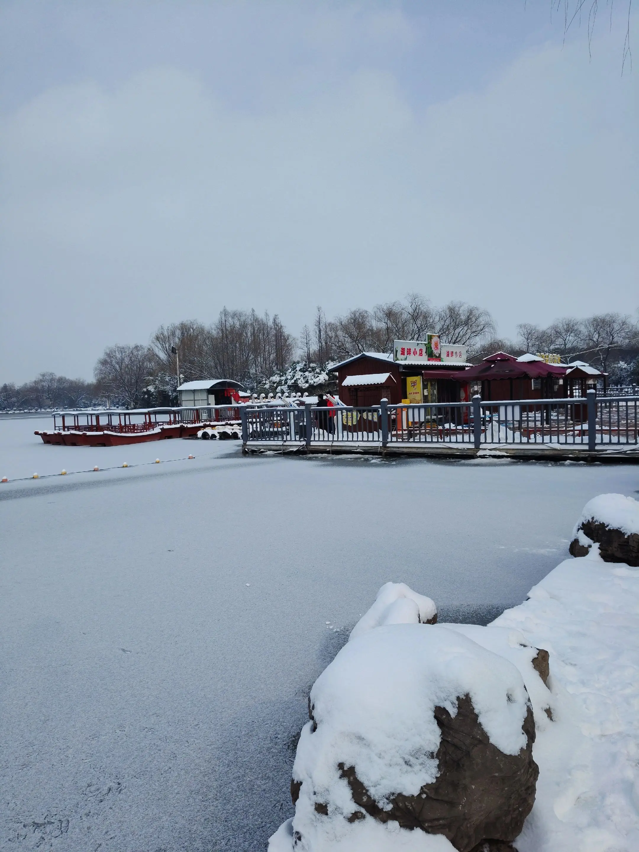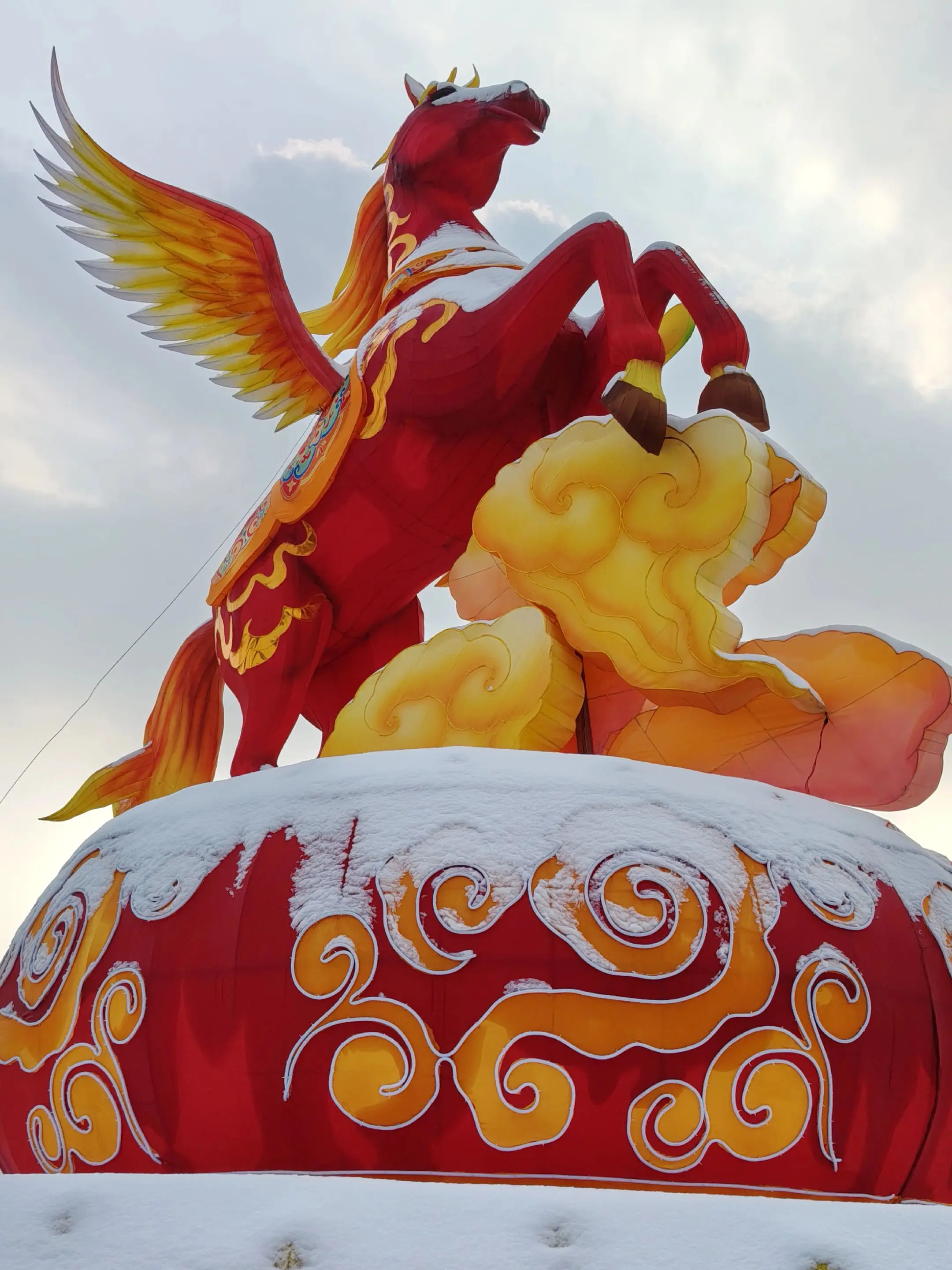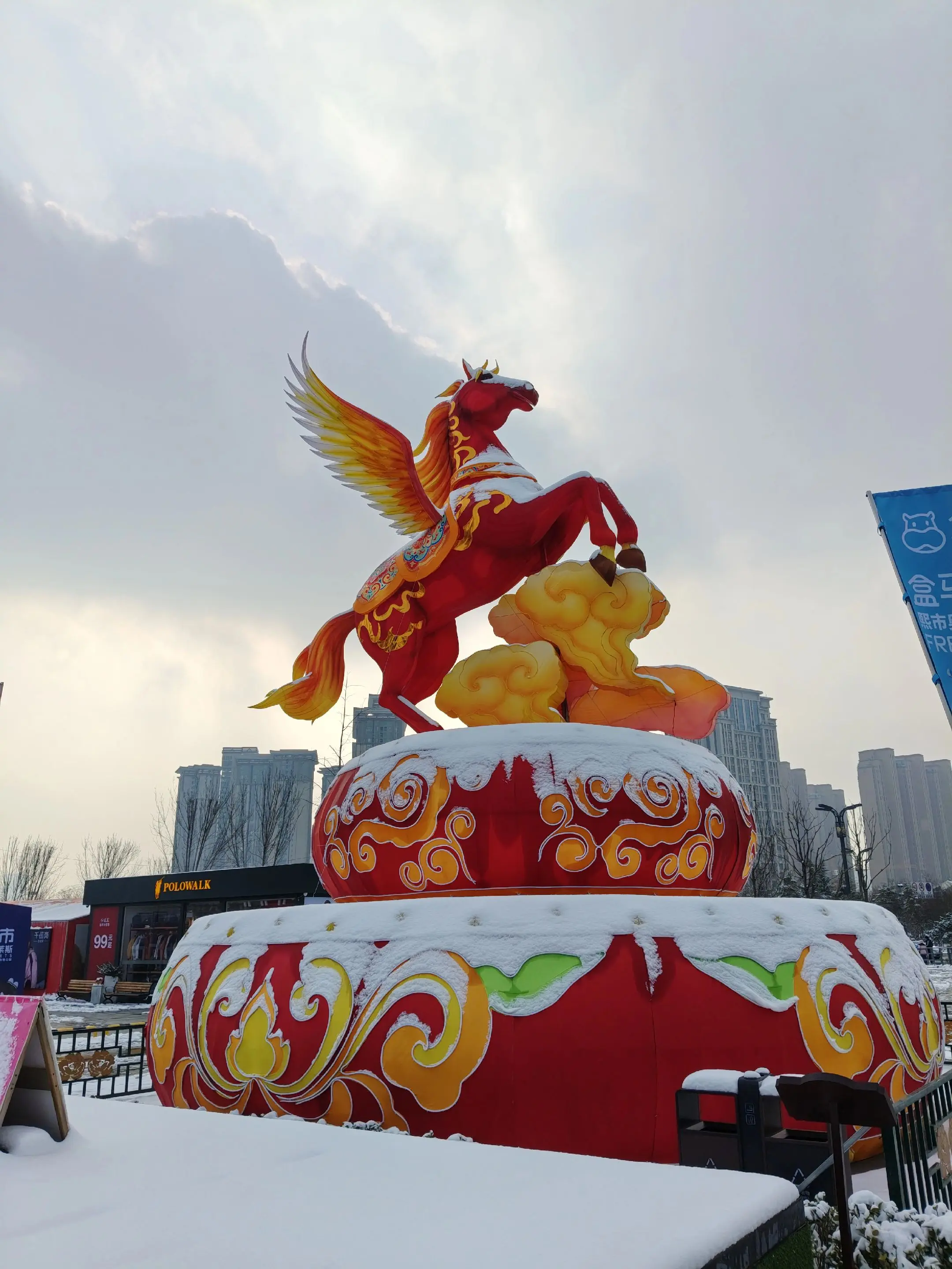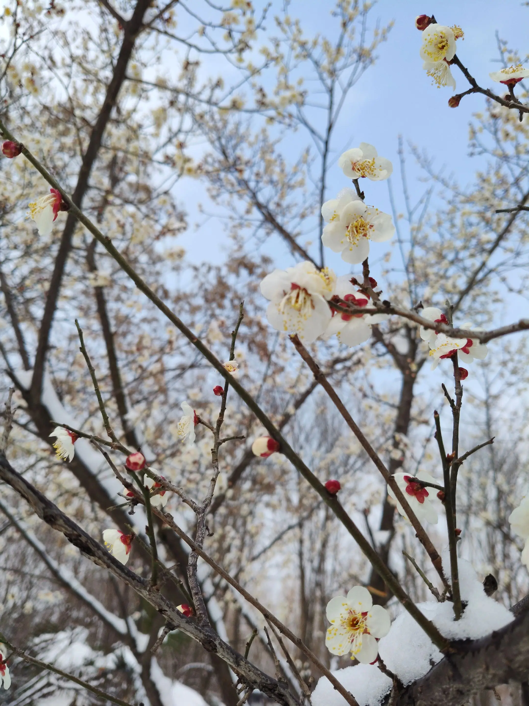 雪中隋唐植物园靓又美。 雪中的隋唐洛阳城遗址公园,白雪与彩...
