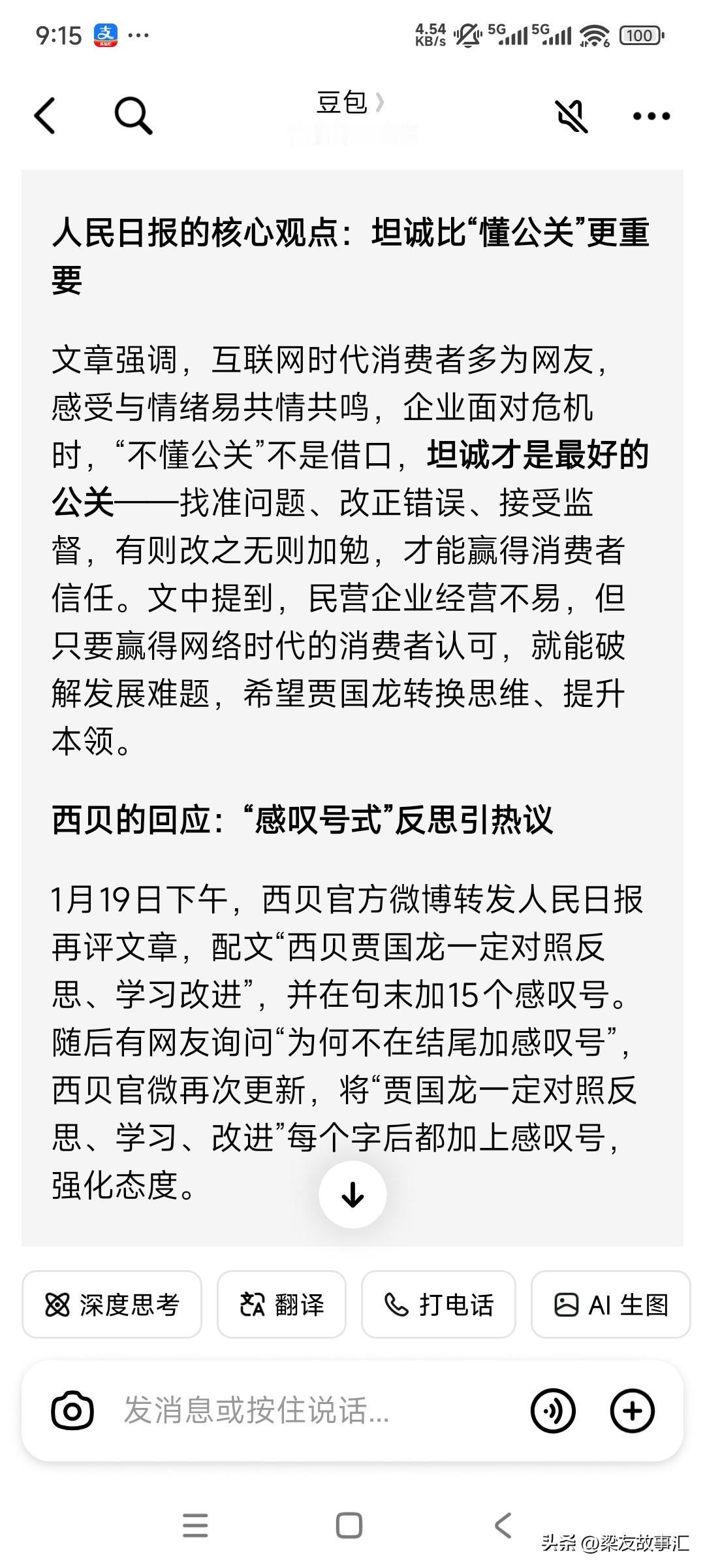吃东北大米的确实比吃草原牛肉的要聪明。 贾国龙这个人看起来他还真是一个有心机的老板。 当他看到1月18号20:44,人民日报发布了第一篇社会评论的时候,他立马给予转发,并且很硬气的仿佛找到了为自己撑腰的靠山,还不忘来了一句人民日报重大表态,相信组织。 但是没想到打脸来的这么快。 在1月19号晚上17点的时候,人民日报又发表了第二篇社会评论。明确指出,危机面前,坦诚是最好的公关。矛头直指贾国龙[大笑]。可笑的是,贾老板到现在为止还并没有转发这样一篇评论。是他没有看到啊,还是他有意选择了忽视? 到目前为止,罗永浩方并没有转发此条评论。二者对比不难发现罗永浩略胜一筹。吃东北大米的比吃草原牛肉的确实要聪明一些。贾囯龙