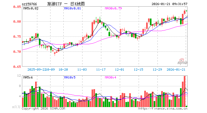 1月21日,旅游ETF(159766)开盘涨0.00%,报0.835元。旅游ETF(159766)重仓股方面,中国中免开盘涨0.00%,上海机场涨0.00%,中国东航涨0.47%,宋城演艺跌0.47%,南方航空涨0.12%,中国国航涨0.22%,华侨城A跌0.37%,锦江酒店跌0.29%,春秋航空涨0.02%,首旅酒店跌0.61%。