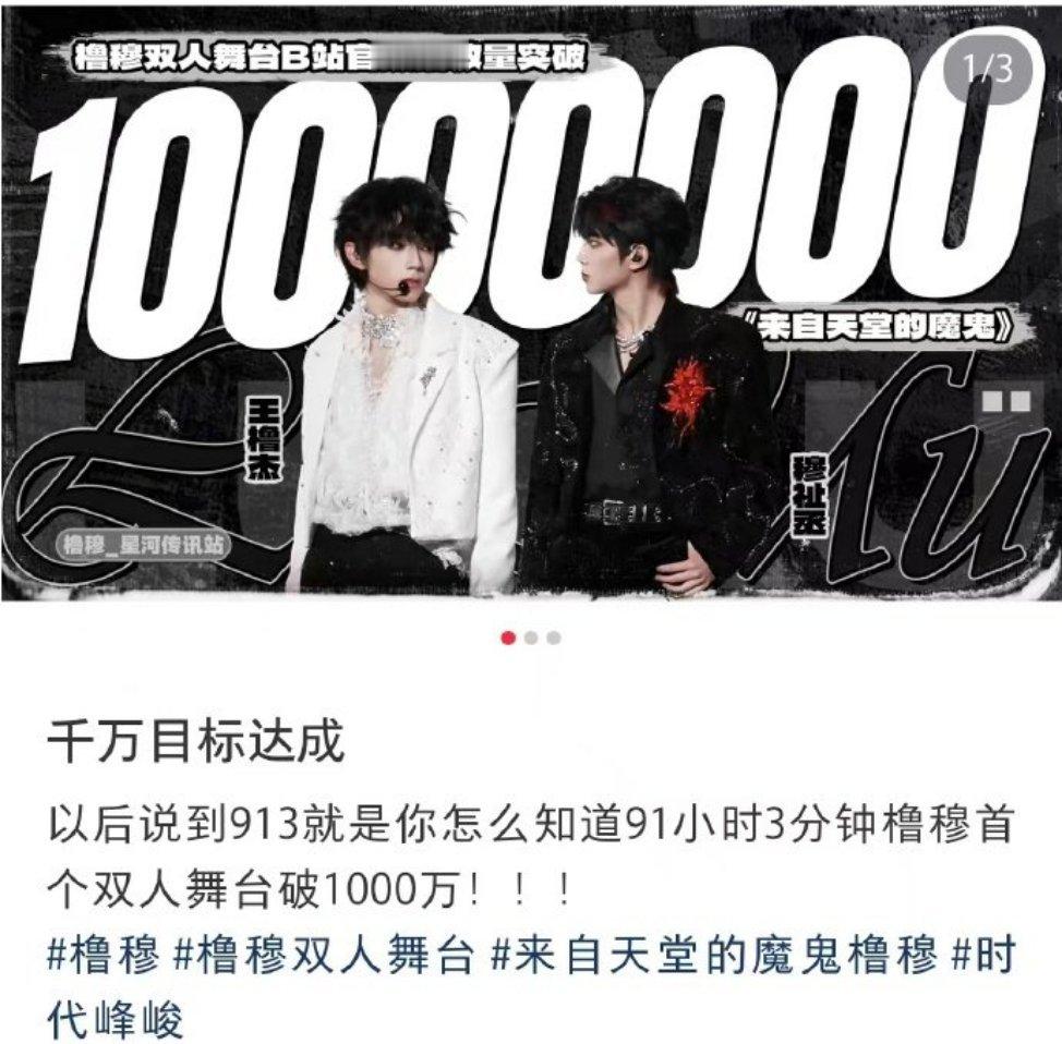 橹穆每个月13号都有节目91小时3分钟!王橹杰×穆祉丞《来自天堂的魔鬼》B站官摄播放量破千万!白衣天使与黑衣魔鬼的宿命感舞台谁看了不说一句橹穆是天选之组!破千万从来不是终点,是热血舞台的全新起点!跨代唯一美帝实锤!橹穆