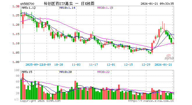 1月21日,科创医药ETF嘉实(588700)开盘跌0.54%,报1.096元。科创医药ETF嘉实(588700)重仓股方面,联影医疗开盘涨0.17%,百济神州跌0.17%,百利天恒涨0.33%,惠泰医疗涨0.56%,艾力斯涨0.57%,君实生物跌0.60%,泽璟制药跌0.80%,荣昌生物涨0.22%,博瑞医药涨0.00%,华大智造跌0.28%。