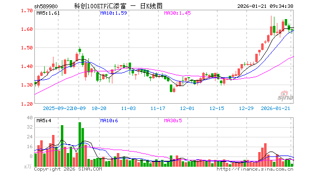 科创100ETF汇添富(589980)开盘涨0.13%,重仓股华虹公司跌1.66%,百济神州跌0.17%