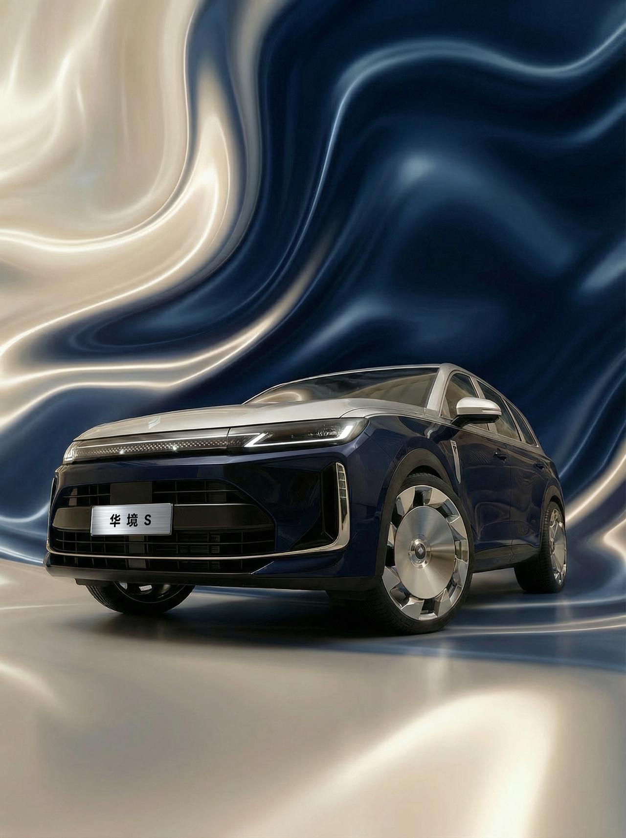 五菱与华为共同打造的华境S发布最新的渲染图 造型大气,双拼色、大饼轮毂、大六座全
