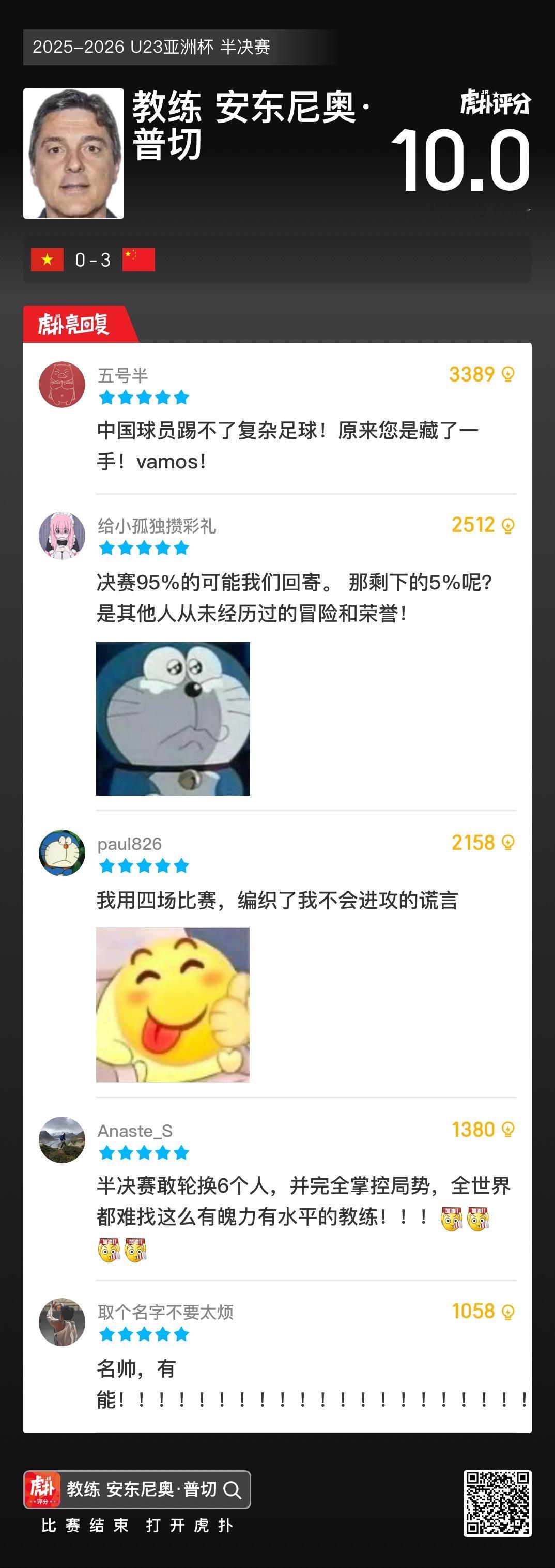 名帅有能!U23国足赛后合影时,全部指向安东尼奥示意为他送上欢呼昨晚的U23亚洲杯半决赛中,中国队3-0战胜越南打进决赛,即将对阵日本。在亚足联官方发布的赛后庆祝视频中,合影环节中国队球员纷纷指向主教练安东尼奥,示意为他送上欢呼。中国男足等了整整22年U23越南主帅说中国换阵措手不及国足的未来