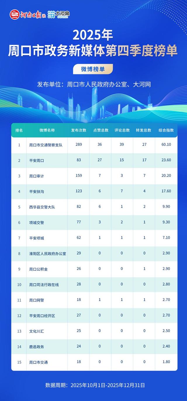 榜单丨周口市政务新媒体矩阵季度榜单