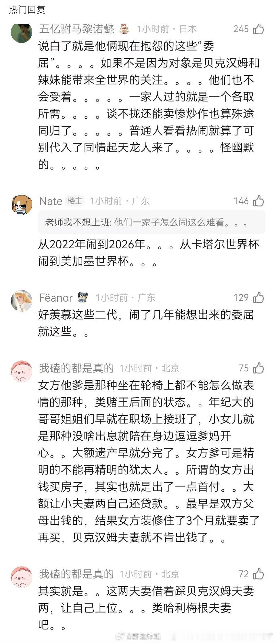 不管贝克汉姆大儿子还是哭泣的网红都看到了只是有点儿“懒得讨论”永远不赞同某些营销号“痛苦不分高低、有钱人也可以哭惨哭痛苦”的言论那骂闫学晶干嘛?闫学晶阶层儿子没钱她们就是痛苦啊?因为这些营销号的辟谷永远没有站在普通大众这一边,衣食无忧拥有太多坐在劳斯莱斯里哭的和蹬着三轮迎着寒风承担所有生活重担心情压力也更玉玉只是没那么多资源和渠道去“矫情”的怎么比?有钱孩子吃喝教育培养都是最顶级还要哭诉有钱家庭没有爱的痛苦和父母农民工打工同时父母吵架甚至离婚家庭不和爷奶勉强养育吃喝教育样样差还更没爱没关心的痛苦怎么比?你已经有钱有资源,你可以哭惨哭痛苦,但请你默默的,把有钱有资源的“惨和痛苦”拿出来晒和卖惨,对所有其他人都是一种虐待和残忍还要去“理解”和“共情”他们,那就是凡间和反人性说得这么惨怪爸妈只认利益,说白了还不是想吃父母苦苦经营一辈子的“贝克汉姆”的品牌去搞利益,但爸妈不让,看了就想吐这些人的嘴脸就想吐