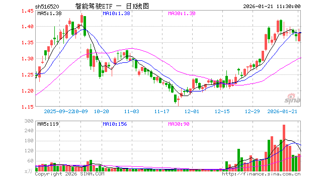 1月21日,截止午间收盘,智能驾驶ETF(516520)涨0.73%,报1.378元,成交额1.38亿元。智能驾驶ETF(516520)重仓股方面,立讯精密截止午盘跌0.50%,芯原股份涨3.87%,拓普集团涨2.63%,豪威集团涨0.72%,科大讯飞涨0.20%,德赛西威跌0.30%,闻泰科技涨3.24%,欧菲光跌0.09%,均胜电子涨1.18%,思特威涨2.05%。
