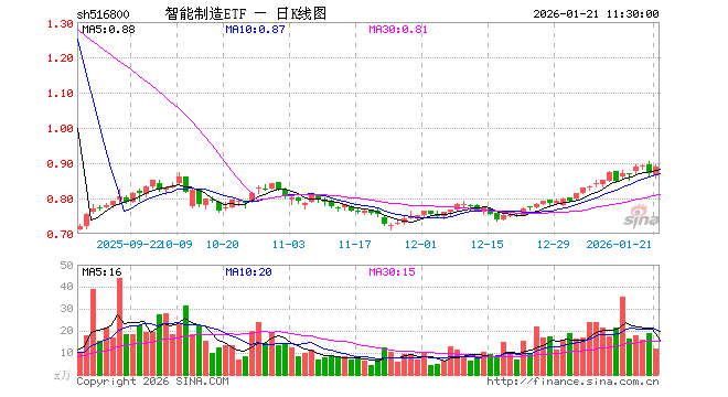 智能制造ETF(516800)业绩比较基准为中证智能制造主题指数收益率,管理人为华宝基金管理有限公司,基金经理为张放,成立(2021-01-29)以来回报为74.11%,近一个月回报为16.02%。