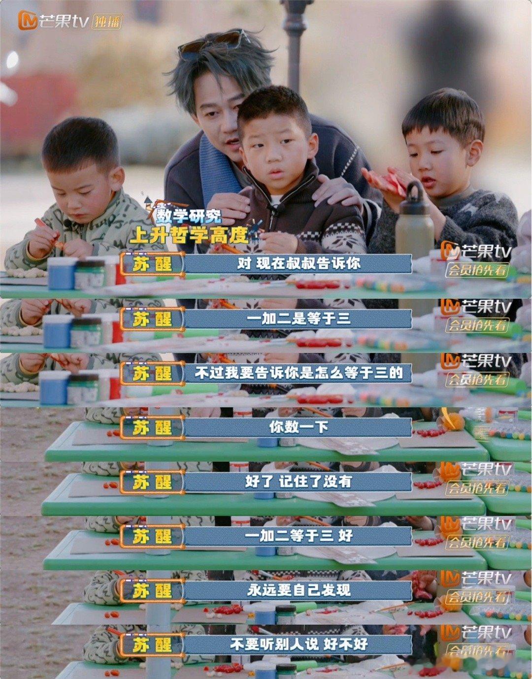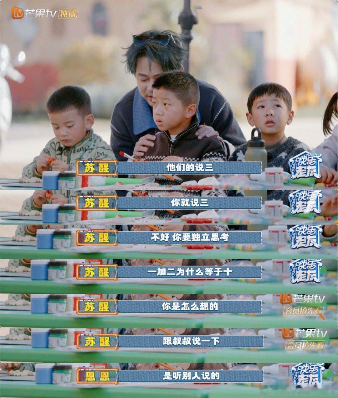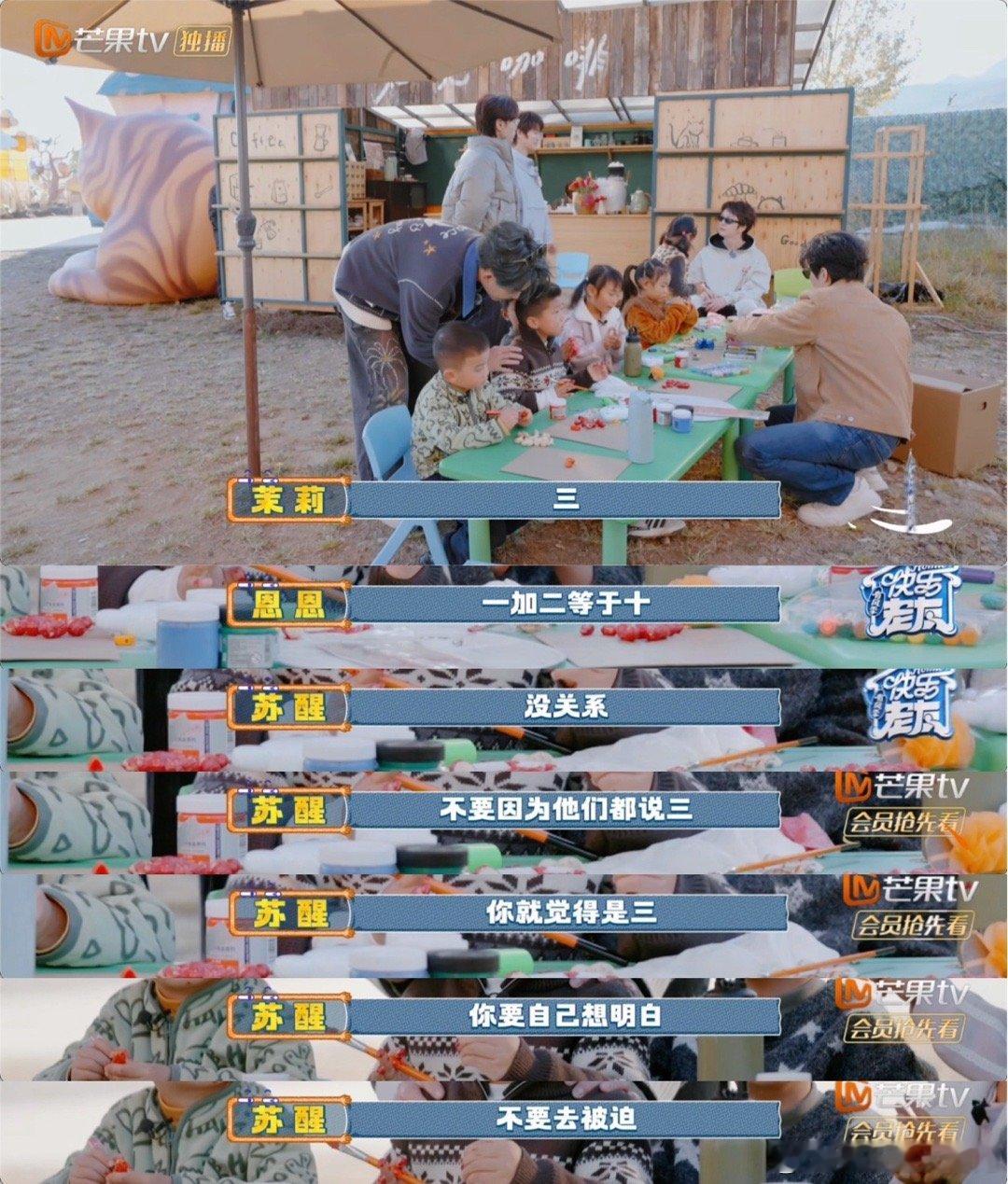 苏醒教小孩 根本想不到的层面 被苏醒的耐心和智慧打动了。他没有把“1+2=3”当作一个必须立刻灌输的知识点,而是把它变成了一个可以讨论、可以探索的问题。这种不急于求成、重视过程的教育方式,真的很值得学习。