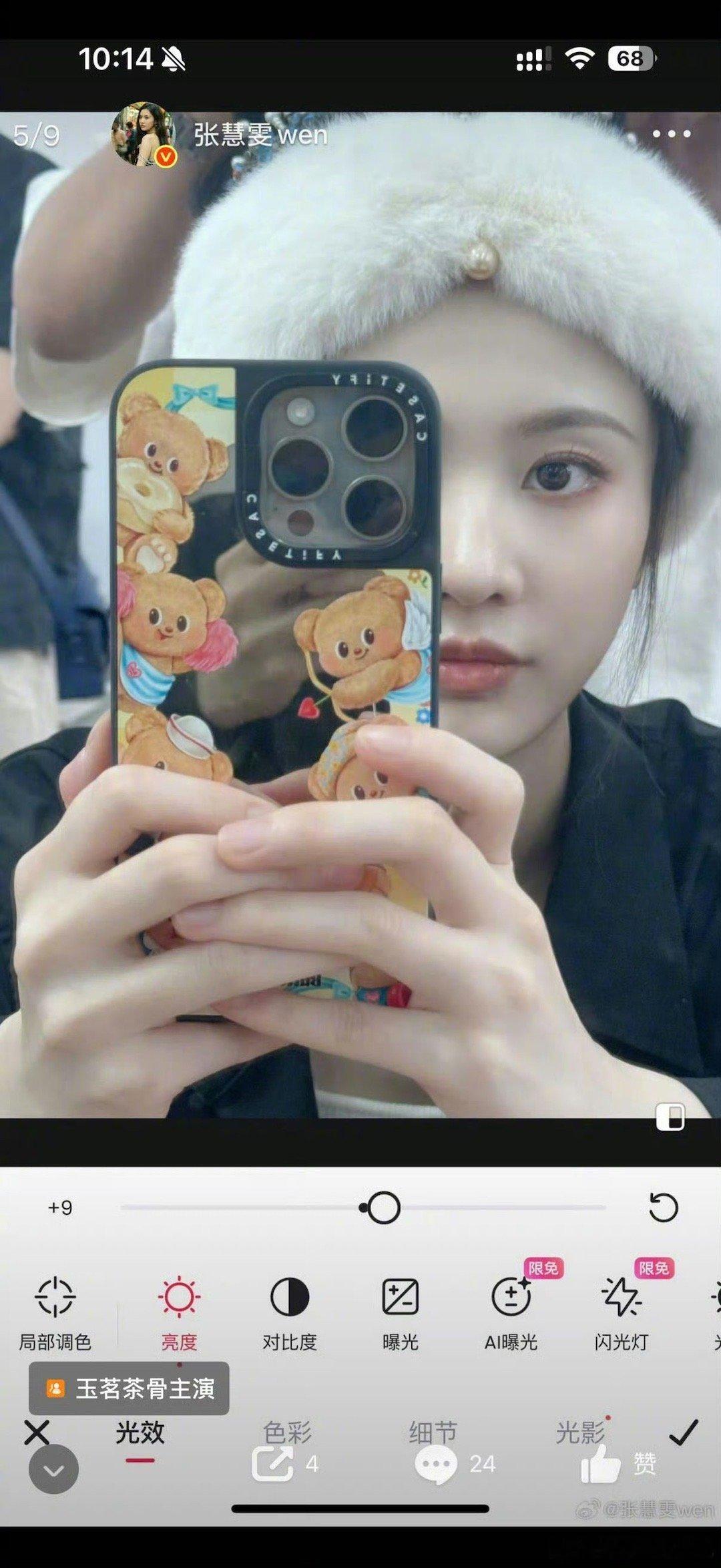 张慧雯编辑记录 张慧雯时隔五年再演古装,收官时开心分享,结果闹了个小乌龙:把修图时的截图发出去了。虽然火速编辑,但大家已经看到了这有趣的一幕。其实以她的古装气质和颜值,生图直出完全没问题,根本不用费心修图呀。