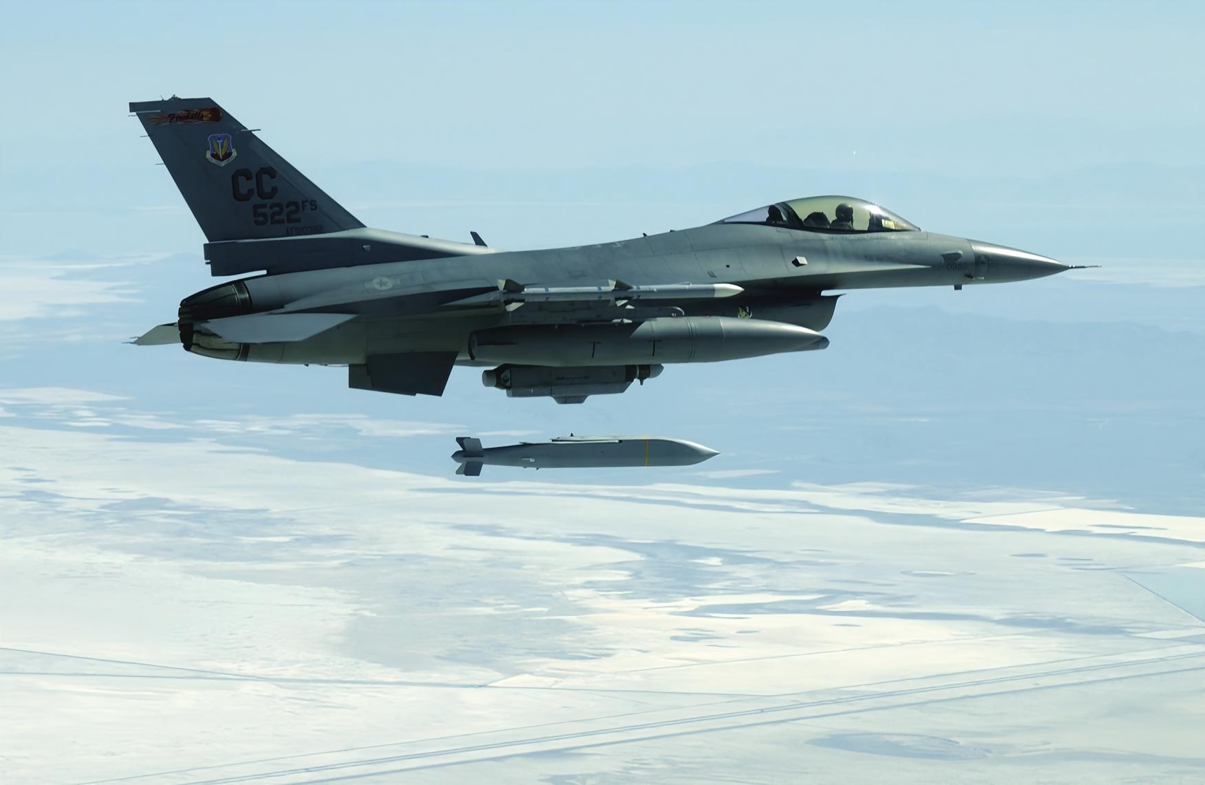 每天认识一件兵器 AGM-154联合防区外武器AGM-154联合防区外武器(Joint Standoff Weapon,简称JSOW)是雷神公司研制的中程投掷滑翔制导炸弹,主要用于打击防空设施。武器类型:滑翔制导炸弹研制厂商:雷神公司服役时间:1995年至今发射平台:F-16战斗机、F-35战斗机AGM-154弹体头部为锥形、中部为箱形,至弹体后部,主尺寸逐渐收缩。弹尾翼有6片,呈花瓣形排列,整体似一艘缩小的潜艇。A型是基本型,装有154个BLU-97/B子弹药,既能杀伤人员、破坏装备,又具有一定的穿甲能力,采用惯性制导加GPS制导。B型为反装甲型,装有6个BLU-108/B分子炸弹药,每个子弹又含有4个小炸弹。每个小炸弹都带有红外制导,其战斗部为聚能定向装药,能穿透坦克装甲,采用惯性制导加GPS中段制导方式。AGM-154的射程远,杀伤力强。低空投掷时最大射程为22千米,高空投掷时最大射程可达130千米。AGM-154采用模块化设计,可使用各种子弹药、一体化战斗部和装载非杀伤载荷。该炸弹拥有发射后不管的能力,子弹药为末敏弹,能自行寻的攻击。烽火问鼎计划|全球武器装备盘点