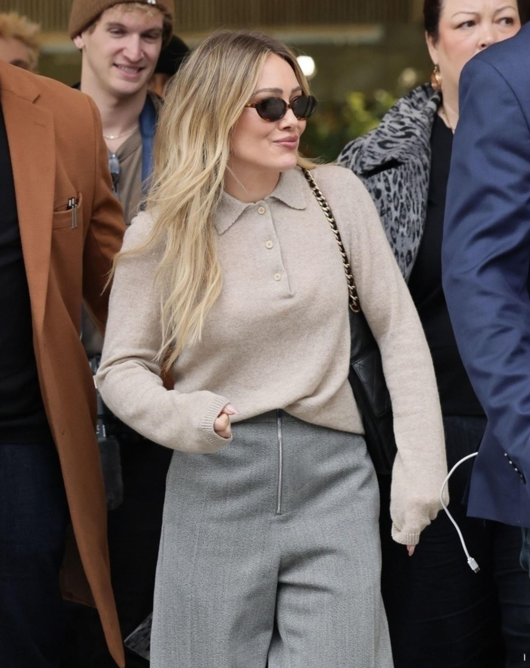 完成首场个人演出的hilary duff希拉里达芙在伦敦外出离开酒店,准备前往下