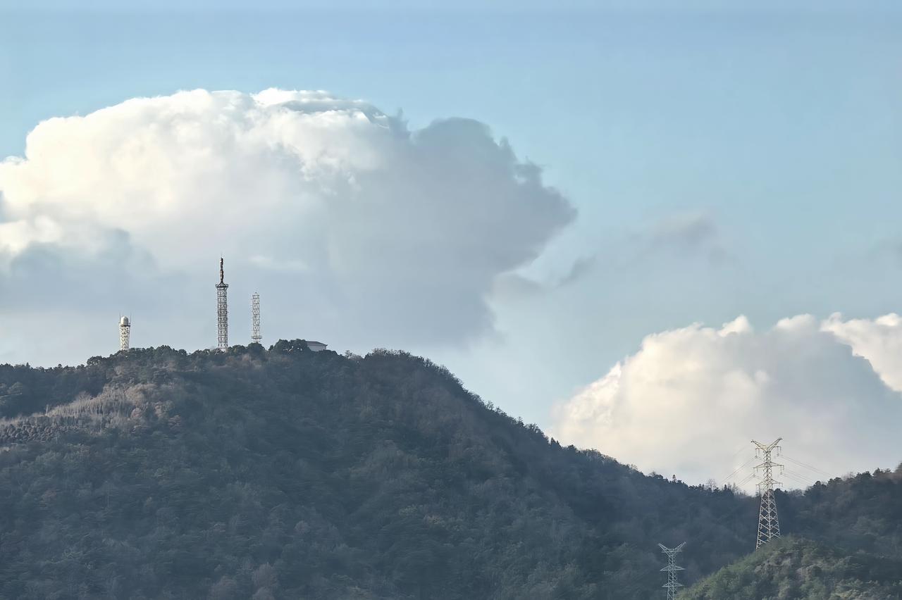 山峦静默,铁塔如诗,云海翻涌间,是自然与工业的温柔对白。山巅的塔影与流云共舞,静