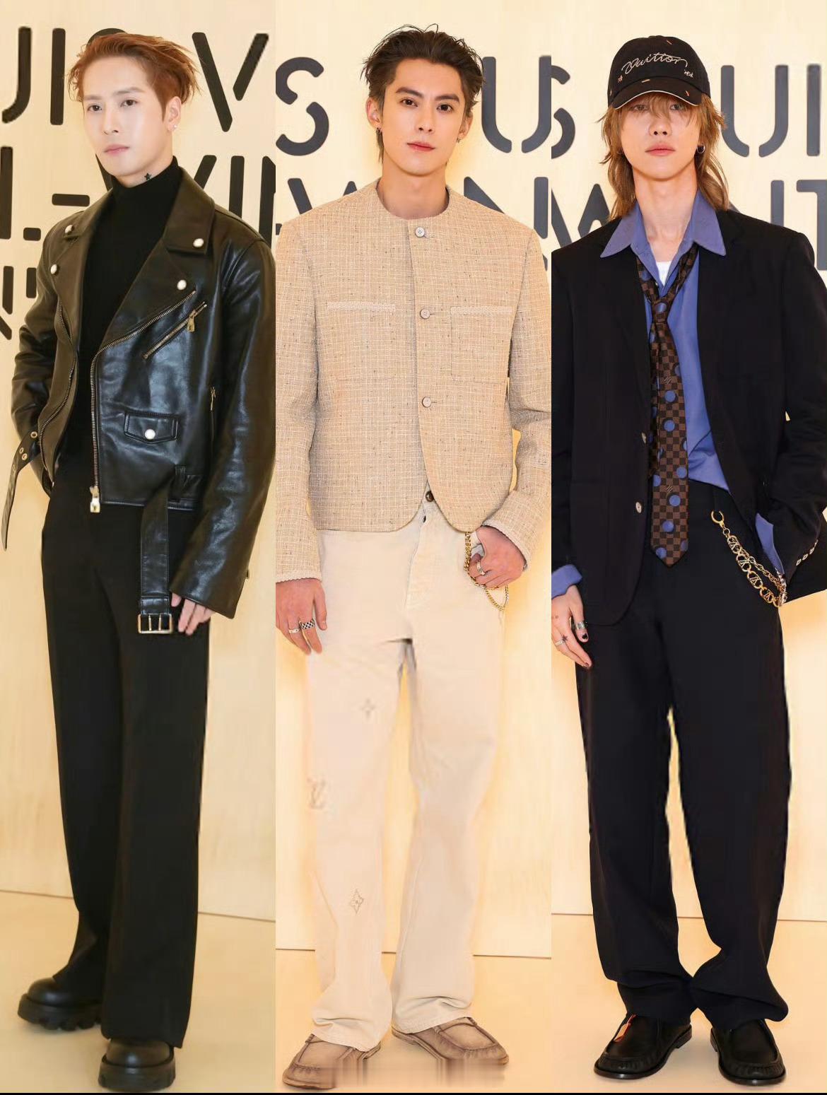 王鹤棣、王嘉尔、徐明浩lv巴黎时装周看秀合照🈶最近三位帅哥频繁见面呀