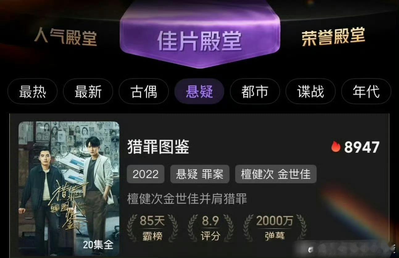 爱奇艺佳片殿堂更新,檀健次三部剧入选:《猎罪图鉴》、《猎罪图鉴2》、《四方馆》,