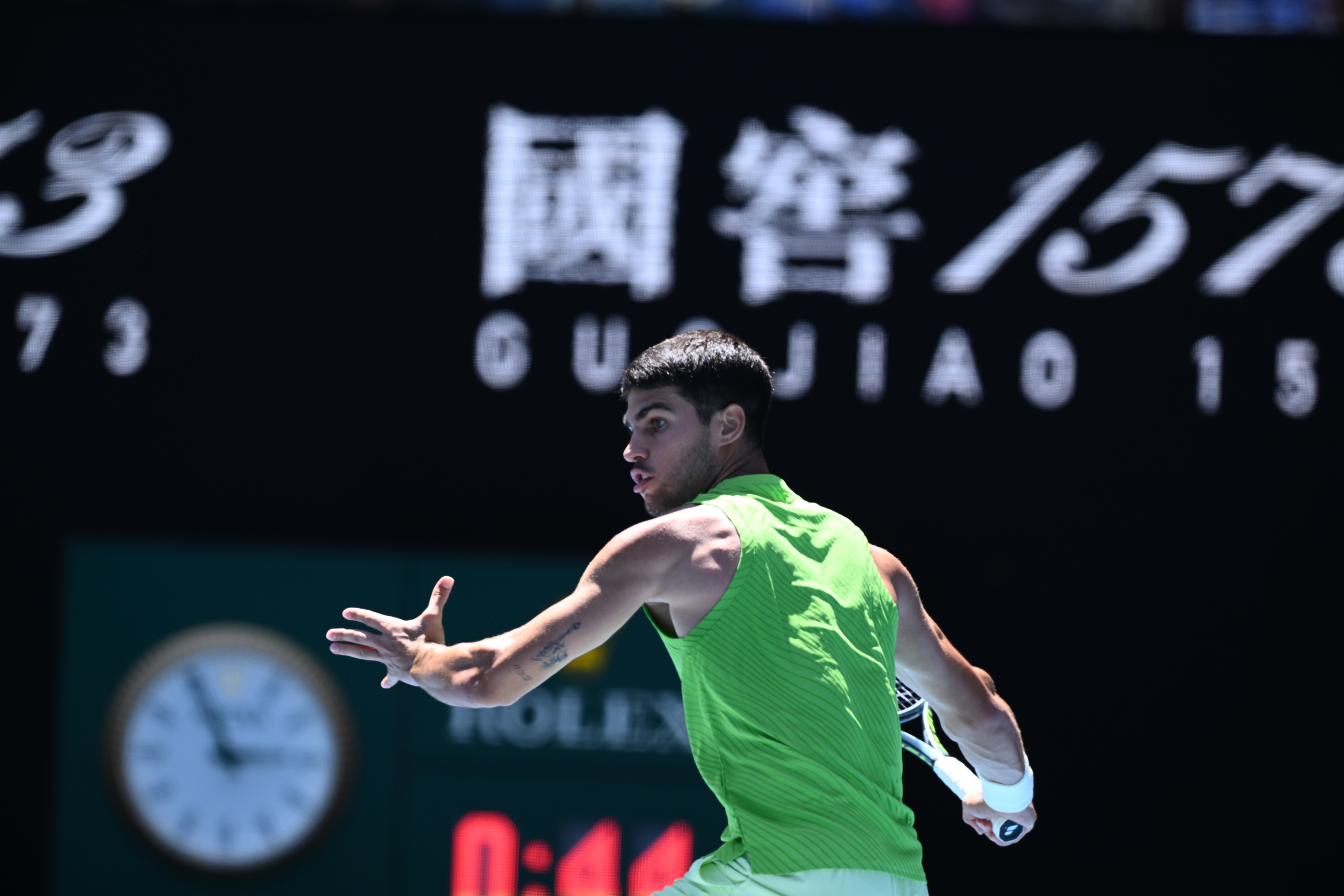 阿尔卡拉斯3比0汉夫曼 阿尔卡拉斯进澳网32强 2026澳网男单第二轮,头号种子阿尔卡拉斯连续两场抢七过关,直落三盘以7-6(4)/6-3/6-2淘汰汉夫曼,最近四次参加澳网全部至少闯进32强,他将在第三轮静候华裔选手郑瑞和穆泰之间的胜者👊这很澳网