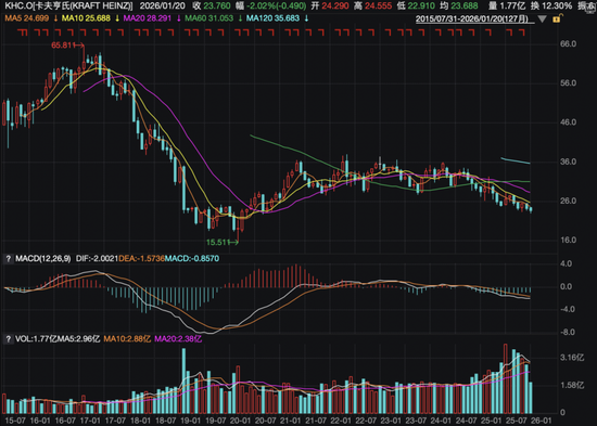截至目前,伯克希尔是卡夫亨氏的最大股东,持股比例为27.5%。根据1月20日的收盘价23.76美元/股计算,伯克希尔持有的股份价值超过77亿美元。该股在盘后交易中下跌超3%。