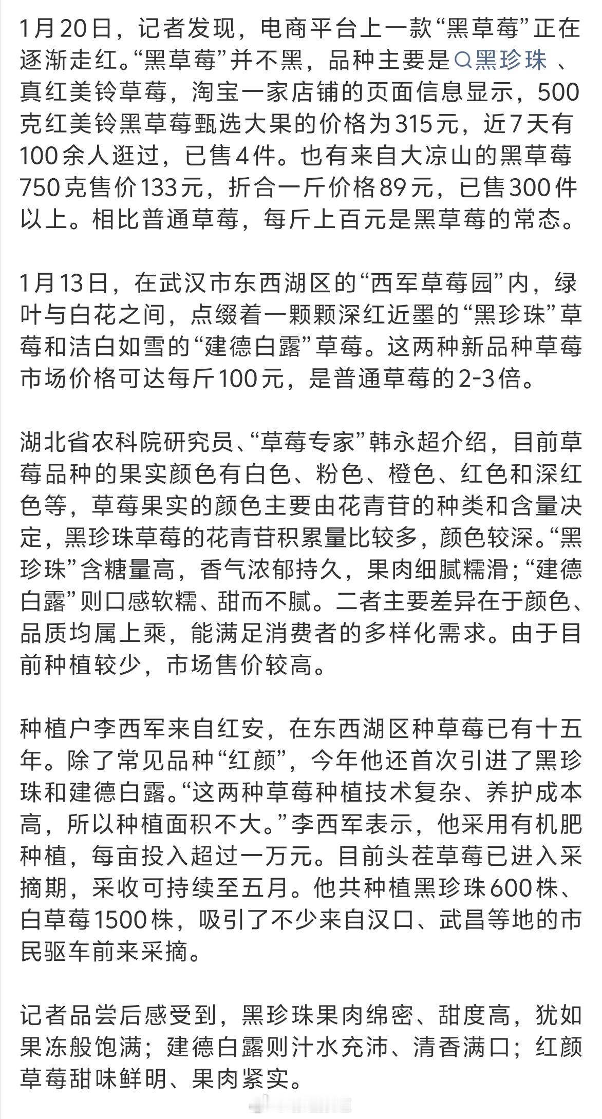 10元一斤草莓和300元一斤草莓区别 虽然我知道10元一斤的草莓已经非常好吃了……但是说得这么牛,我都有点好奇,真的假的?有吃过的兄弟吗?