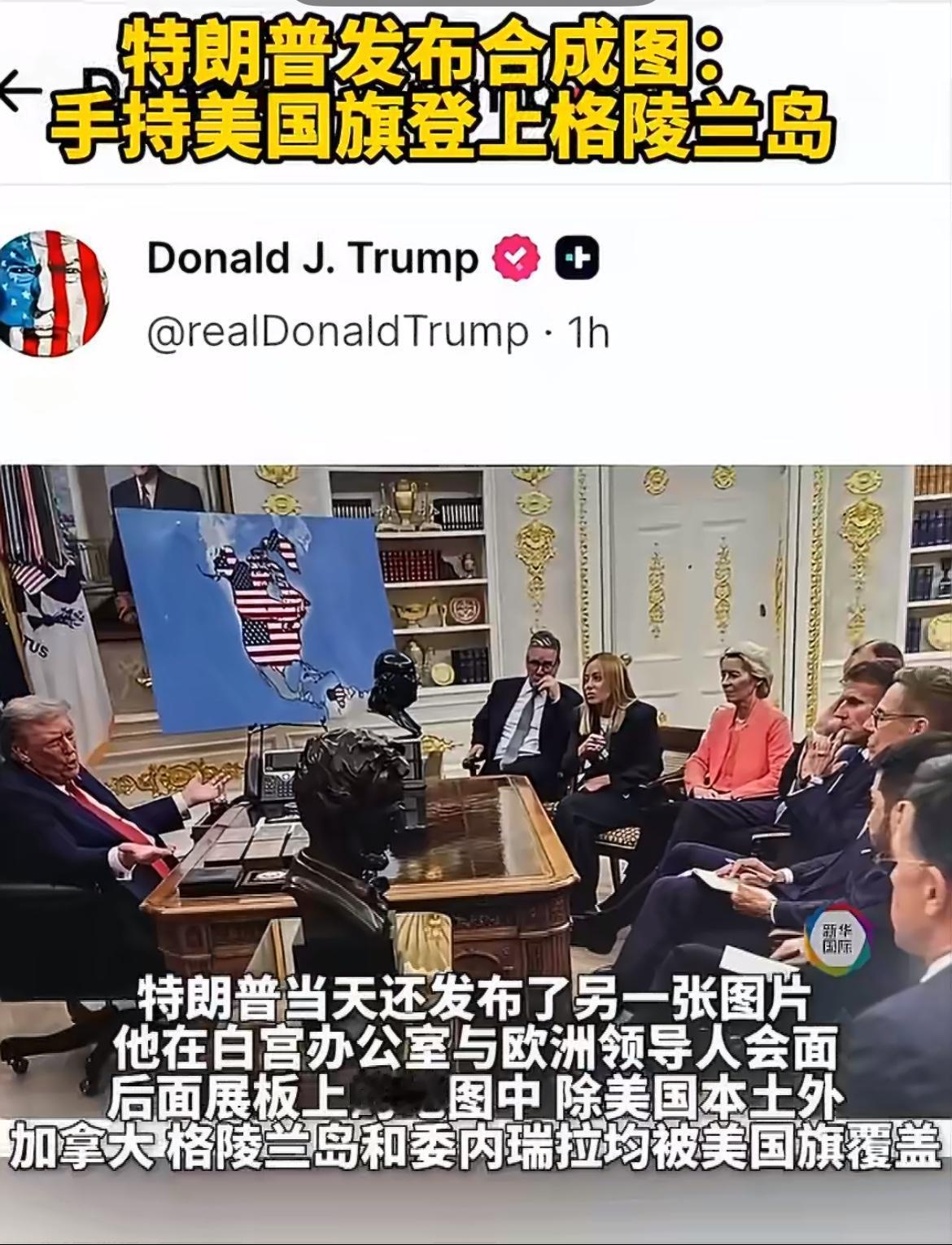 世界都懵了!特朗普公布了登上格陵兰岛的照片! 1月20日凌晨,特朗普在社交媒体