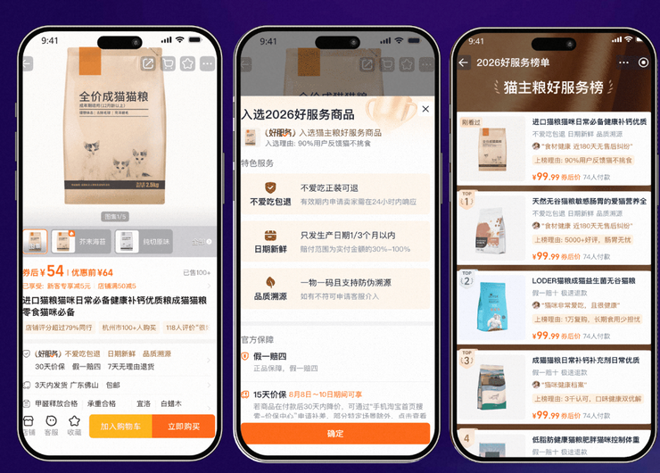 此外,淘宝天猫还同步加码营商环境优化举措,帮助商家安心在平台投入、获得增长。2026年,淘宝天猫不仅将继续推行并完善异常账户诚信档案、商家保障机制及扰乱市场行为治理等,还将在行业首次推出售后AI假图专项治理,上线识别模型并开放一键反馈入口。
