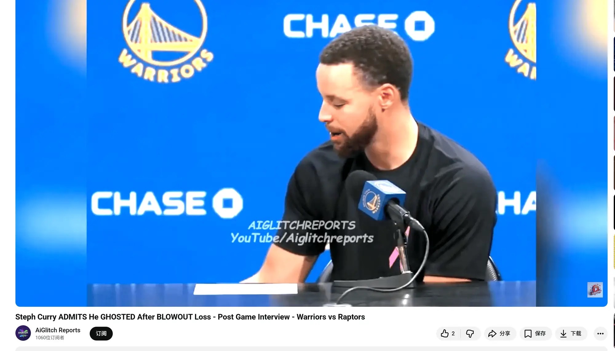 我在外网找不到 库里这段采访 刚刚粉丝私信给我的 已经有人查出来 发出库里这段采访的账号就是专门AI恶搞的 结果被他们看到信以为真了 👍