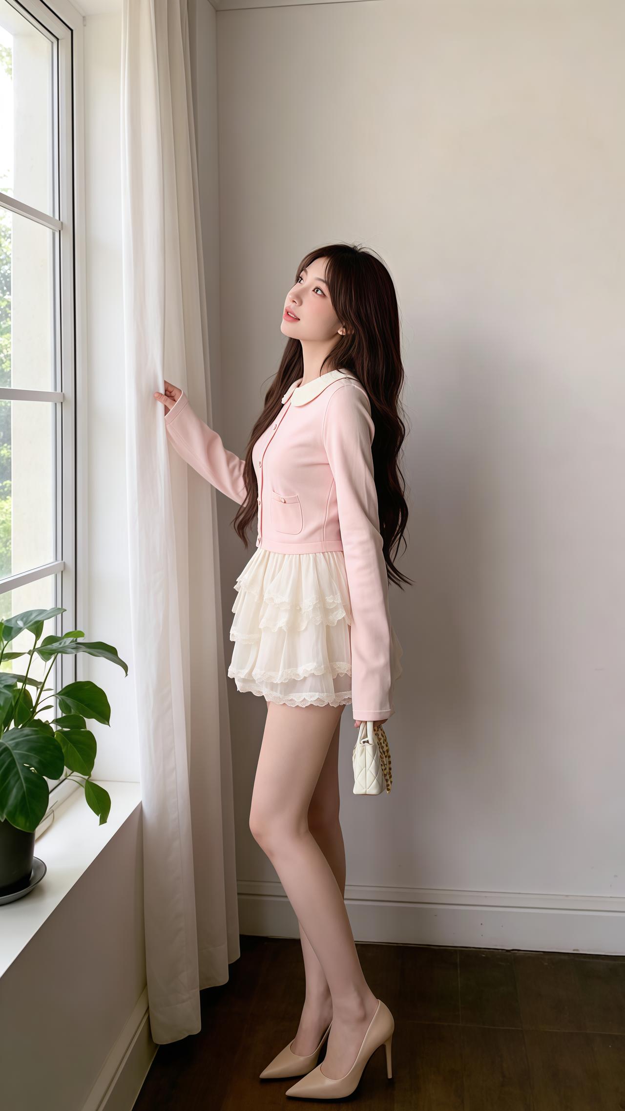 孙允珠这一身米色短裙配白色长袖的穿搭,简直把温柔魅力拉满!就像看到她穿的浅米色吊