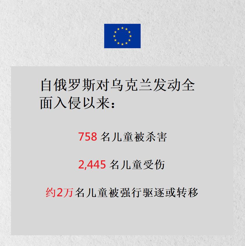 1月21日,欧盟对外行动署在X上发布了一则贴文: 每个孩子的生命都至关重要。自俄罗斯对乌克兰发动全面入侵以来,已有数千名儿童被杀害或受伤。孩子们本应在学校和操场上成长,而非在战争中度过童年。“ 德国和欧盟与乌克兰坚定站在一起。”